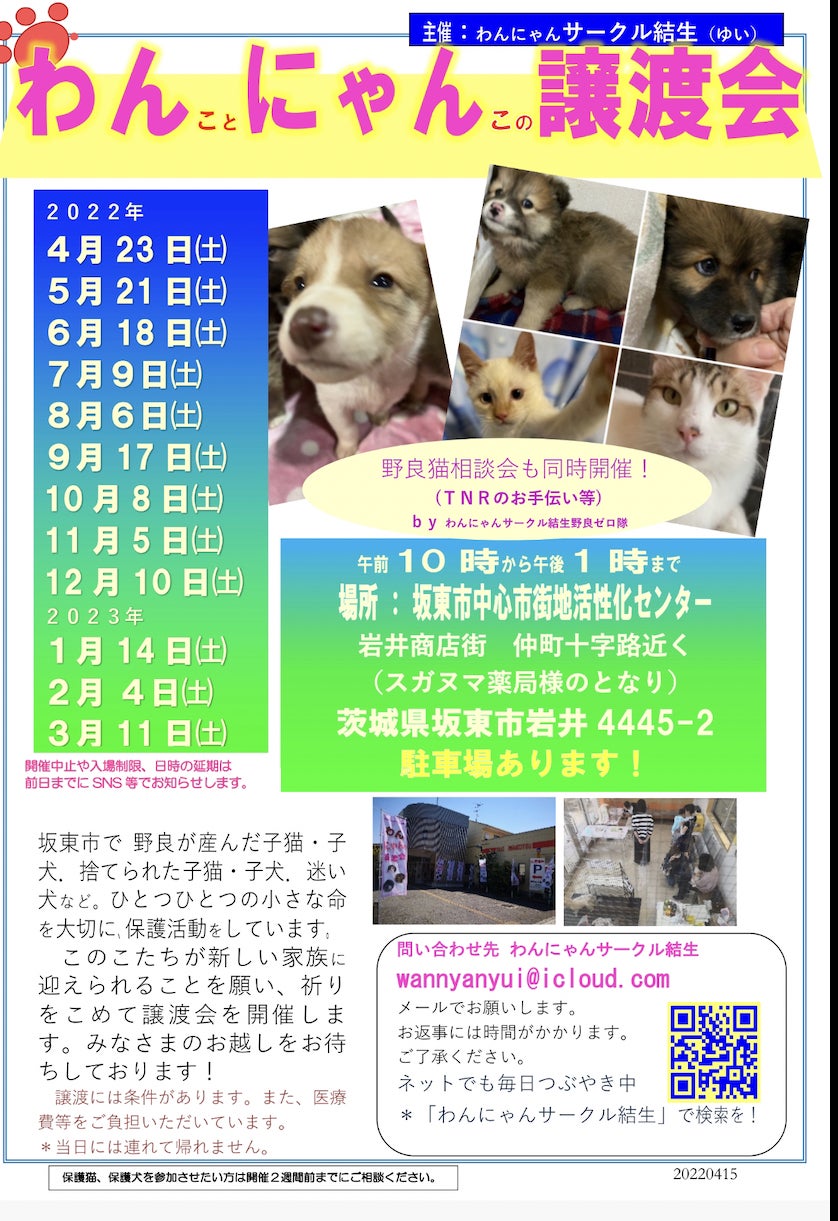 おはようございます。わんにゃんサークル結生の秋元です。