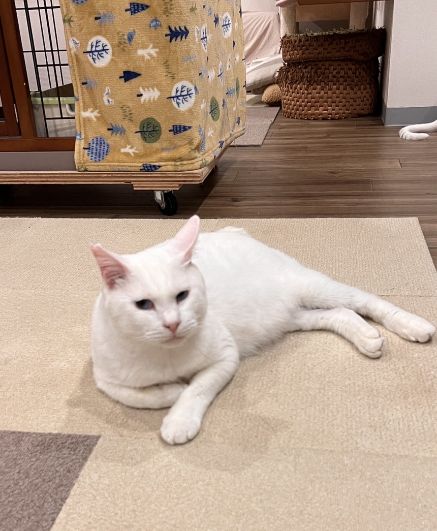 保護猫カフェさくら2号店にお世話になることになった たまこちゃん。