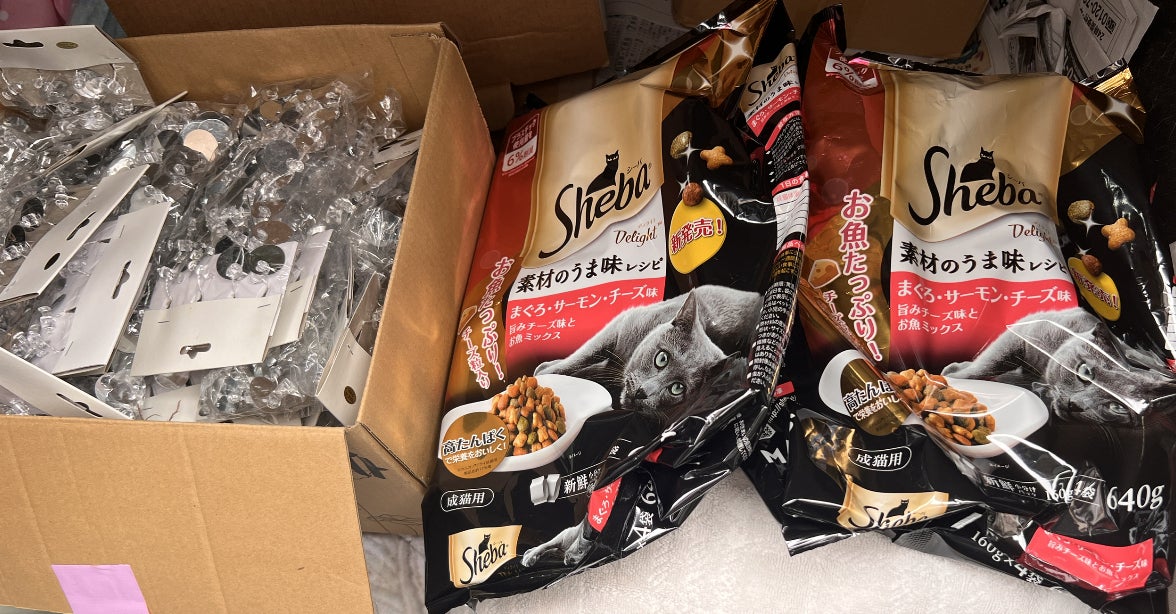 Y様から猫さんフードや布類、飾りなどご支援いただきました。