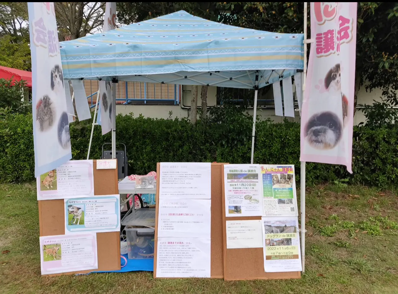 守谷市にある常総運動公園にて成犬の譲渡会を開催しました。
