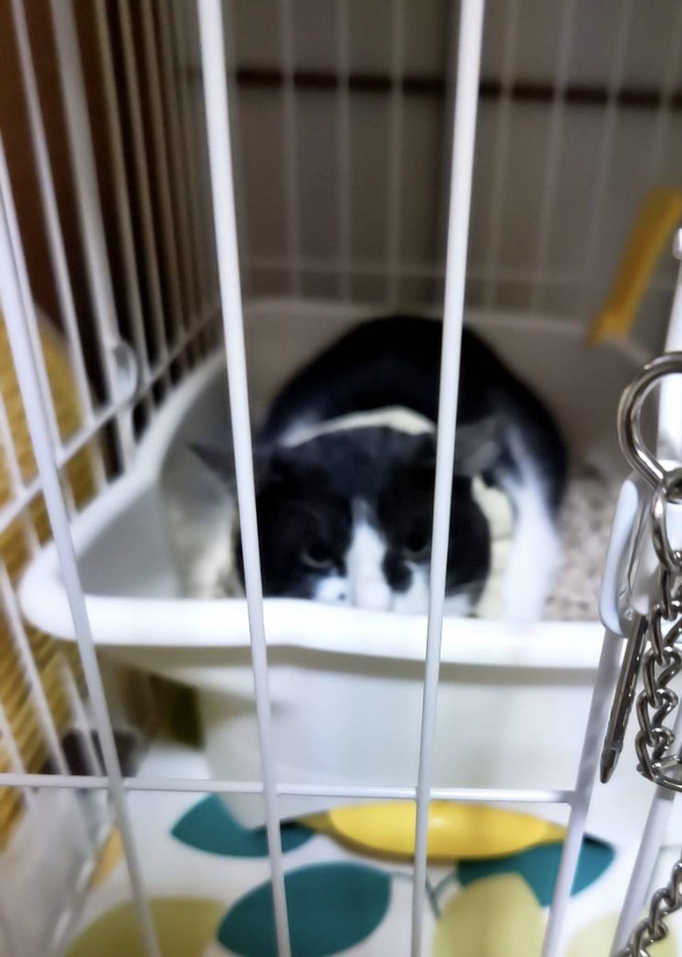施設にいる成犬ちゃんたちは、毛布半分くらいの広さのケージにひとりひとり過ごしています。