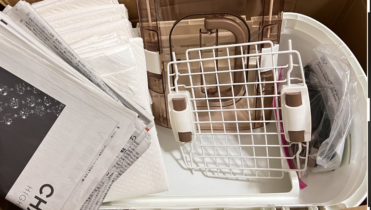 N様からキャリー、ペットシーツ、新聞紙ご支援いただきました。