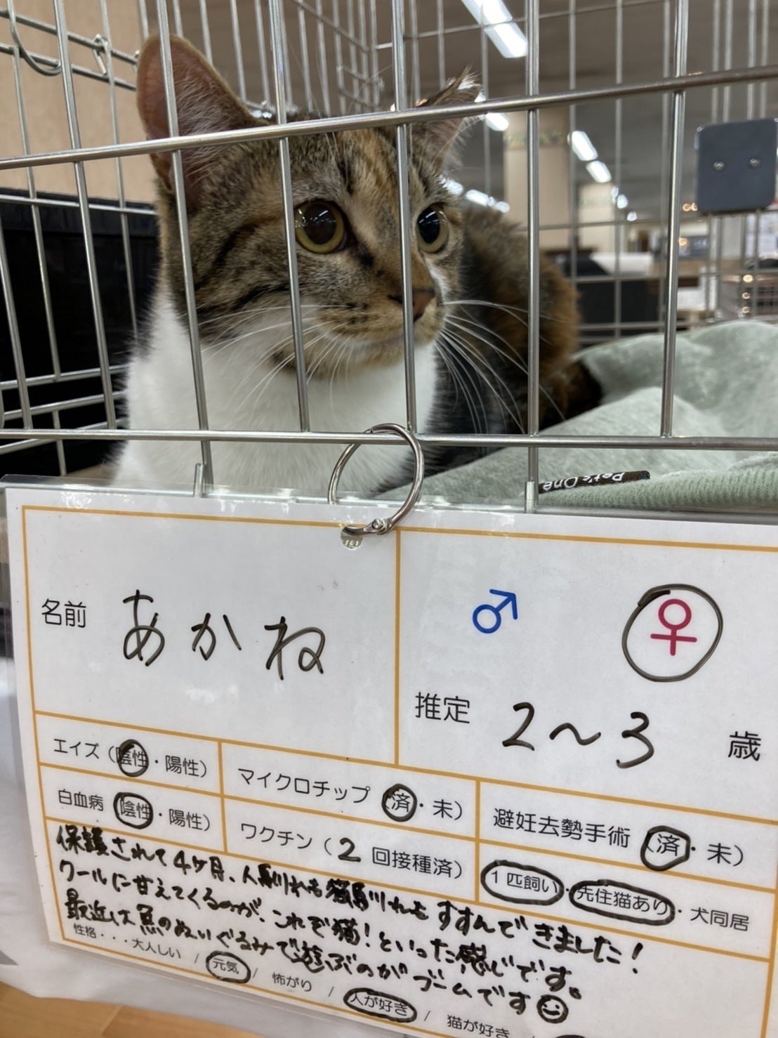 保護猫カフェさくらさん主催のねこちゃん譲渡会に参加したあかねちゃん。