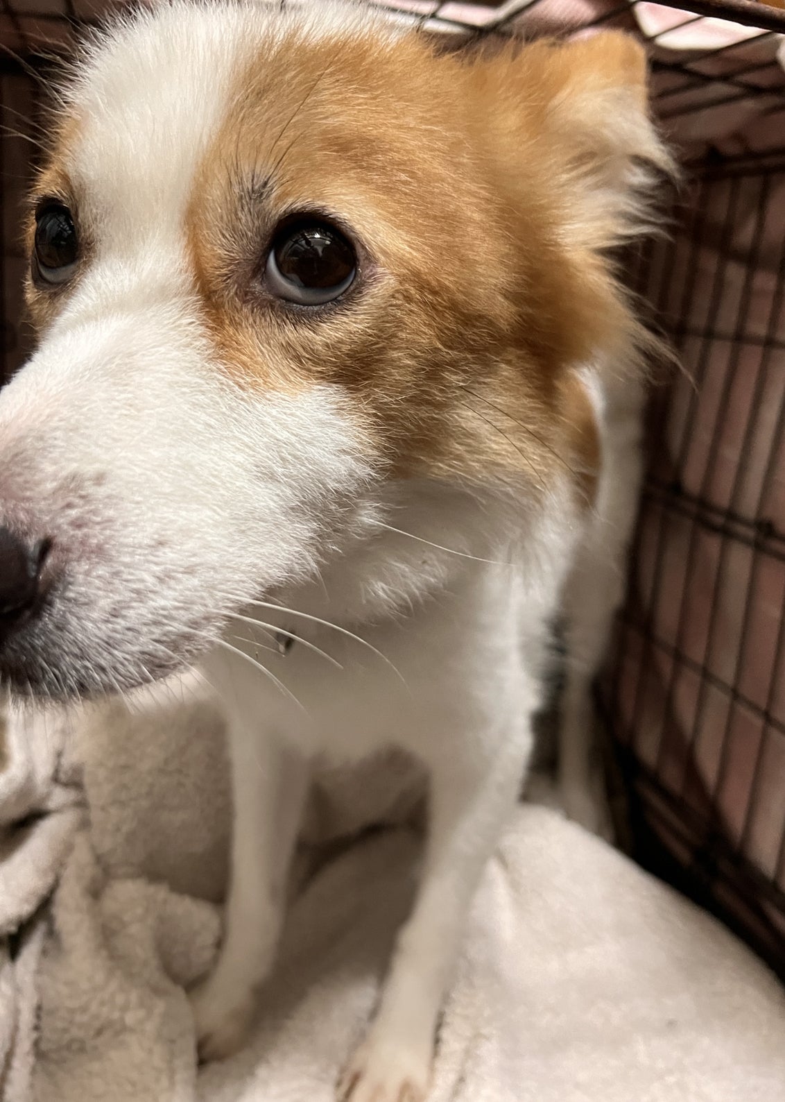 施設にいる成犬ちゃんたちは、毛布半分くらいの広さのケージにひとりひとり過ごしています。