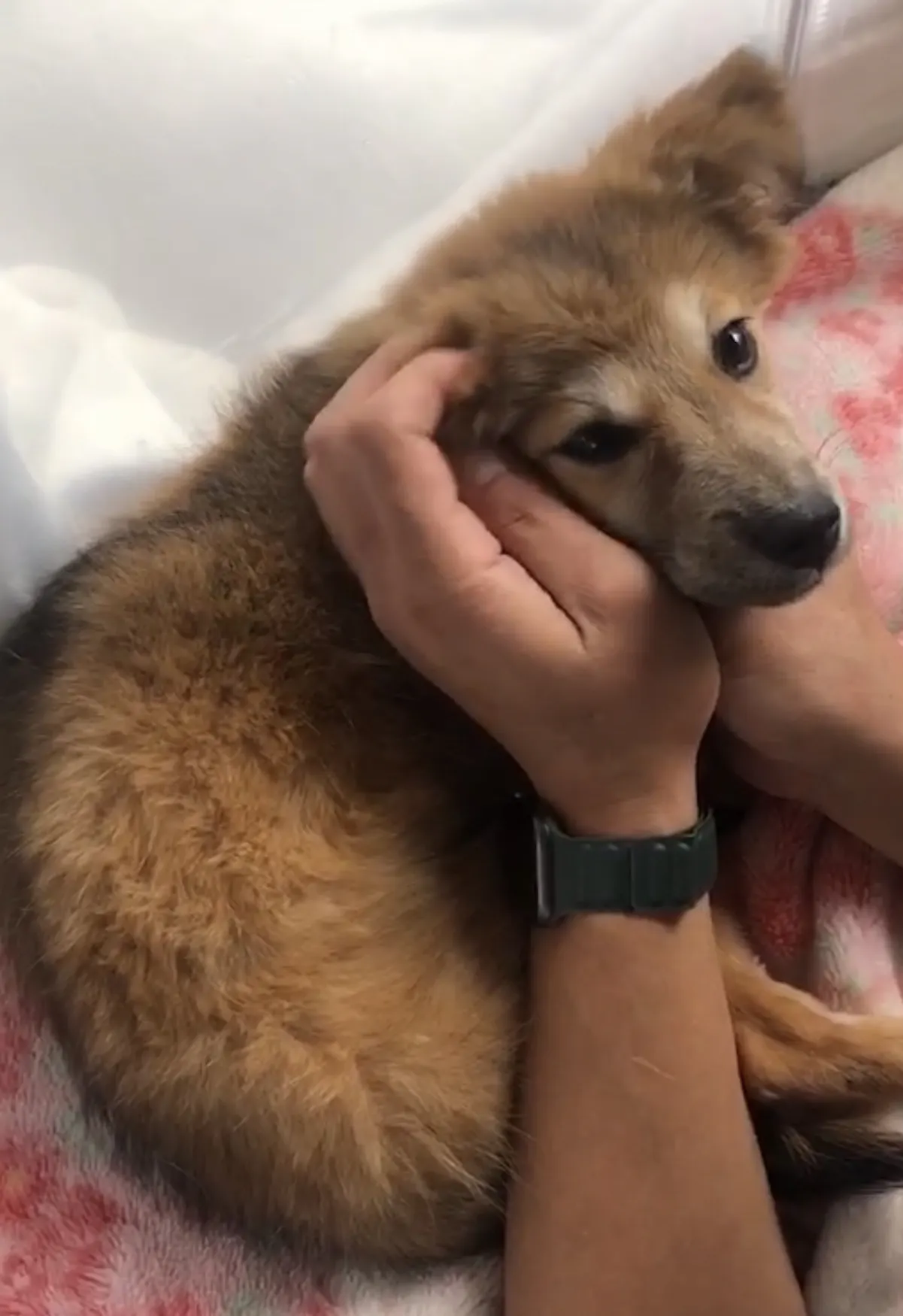 預かりボランティアさんにお世話になっている 子犬のかなちゃん。