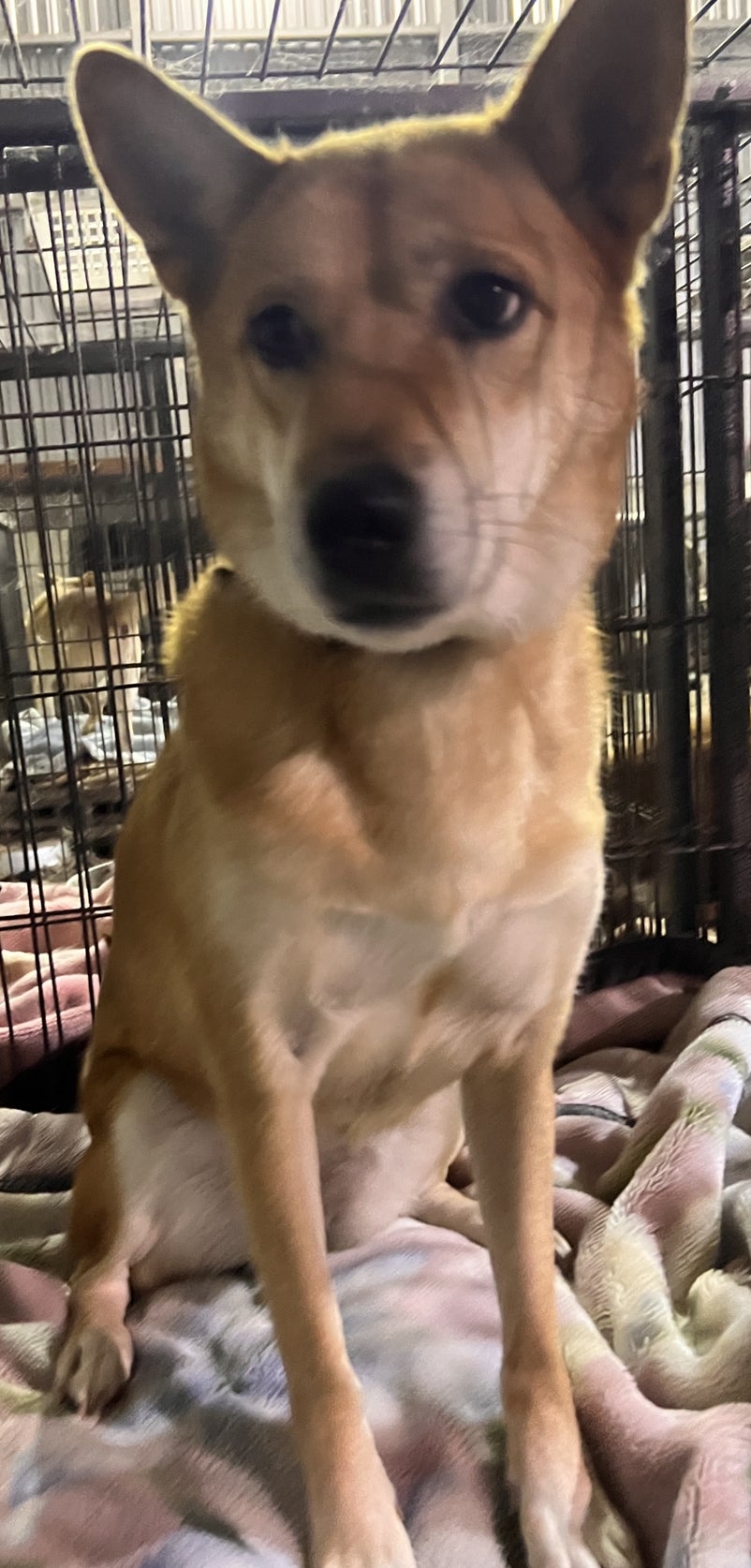 毛布半分くらいの広さの大型犬用ケージにひとりひとり過ごしています。