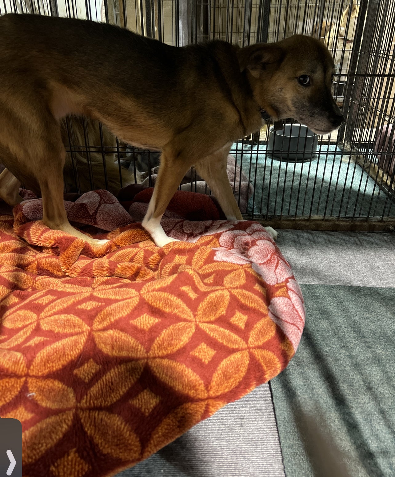 毛布半分くらいの広さの大型犬用ケージにひとりひとり過ごしています。