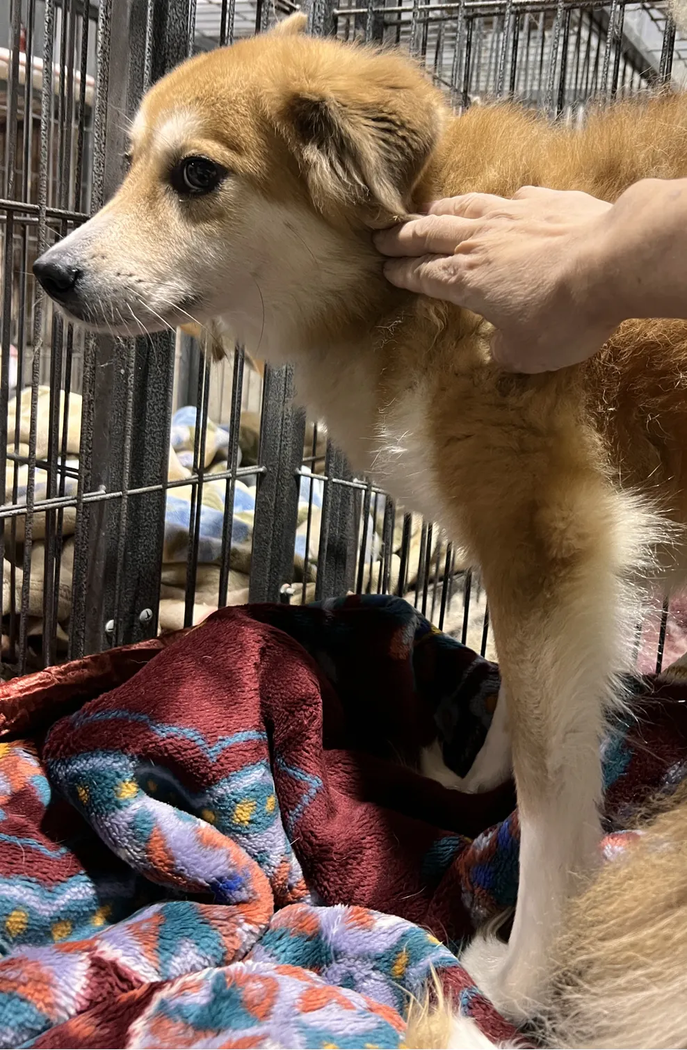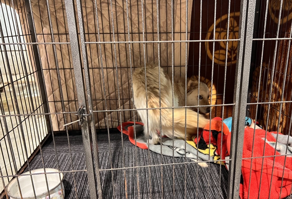 市役所の捕獲箱で捕まっているわんちゃんたち。