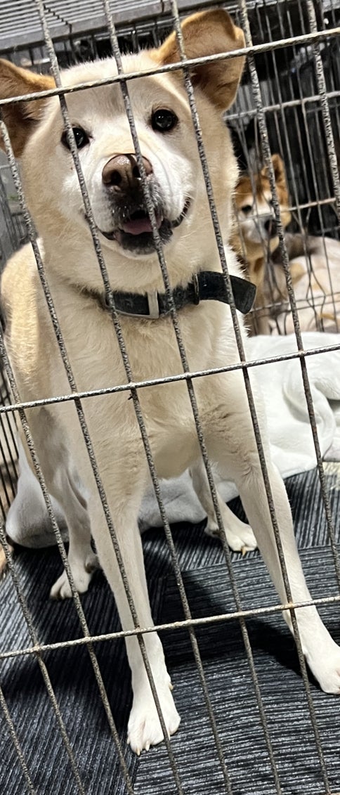 市役所の捕獲箱で捕まっているわんちゃんたち。
