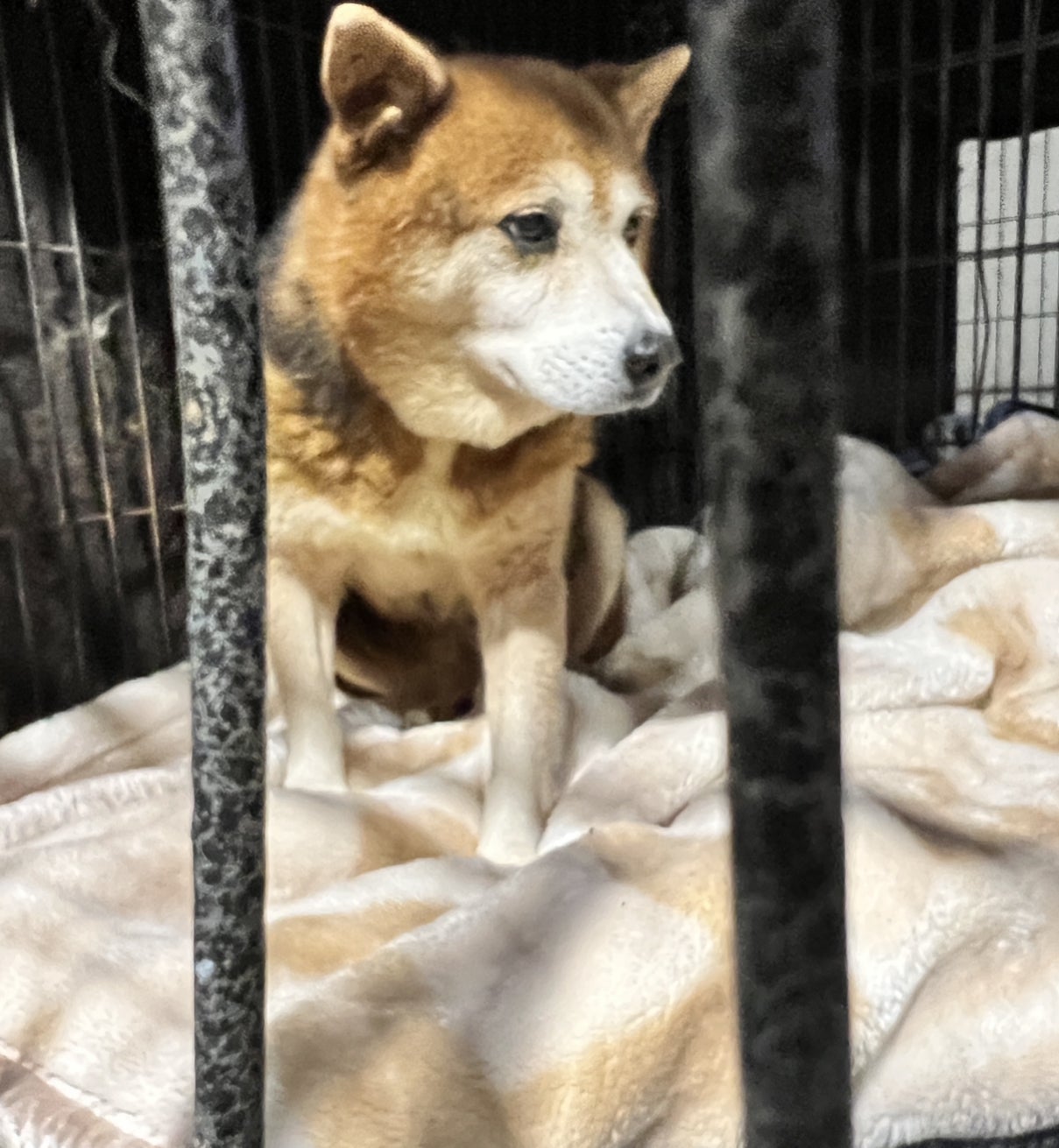 市役所の捕獲箱で捕まっているわんちゃんたち。