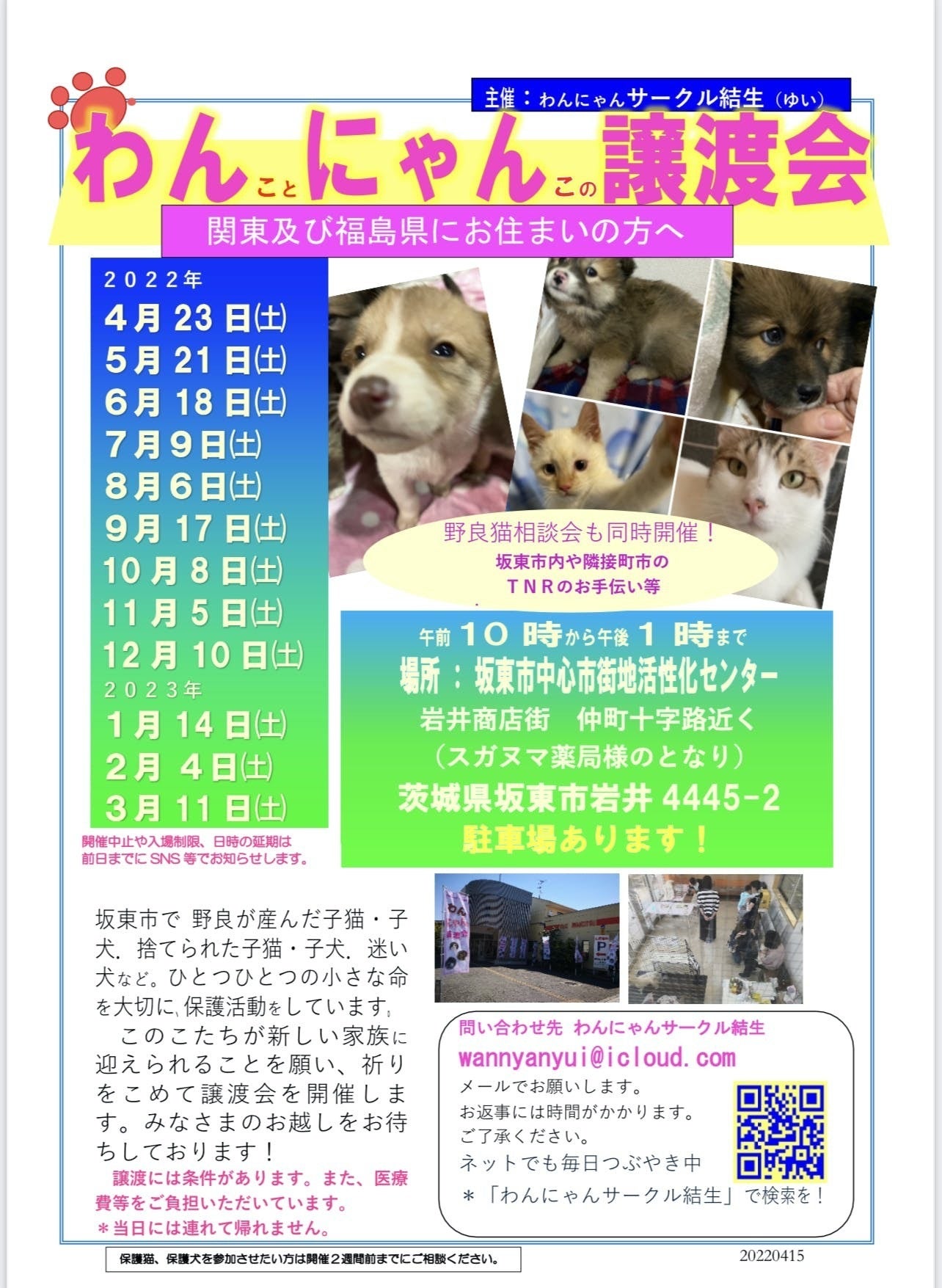 ☆子犬ちゃん、猫さんたちにご縁がありますように。(本日、地元譲渡会)☆