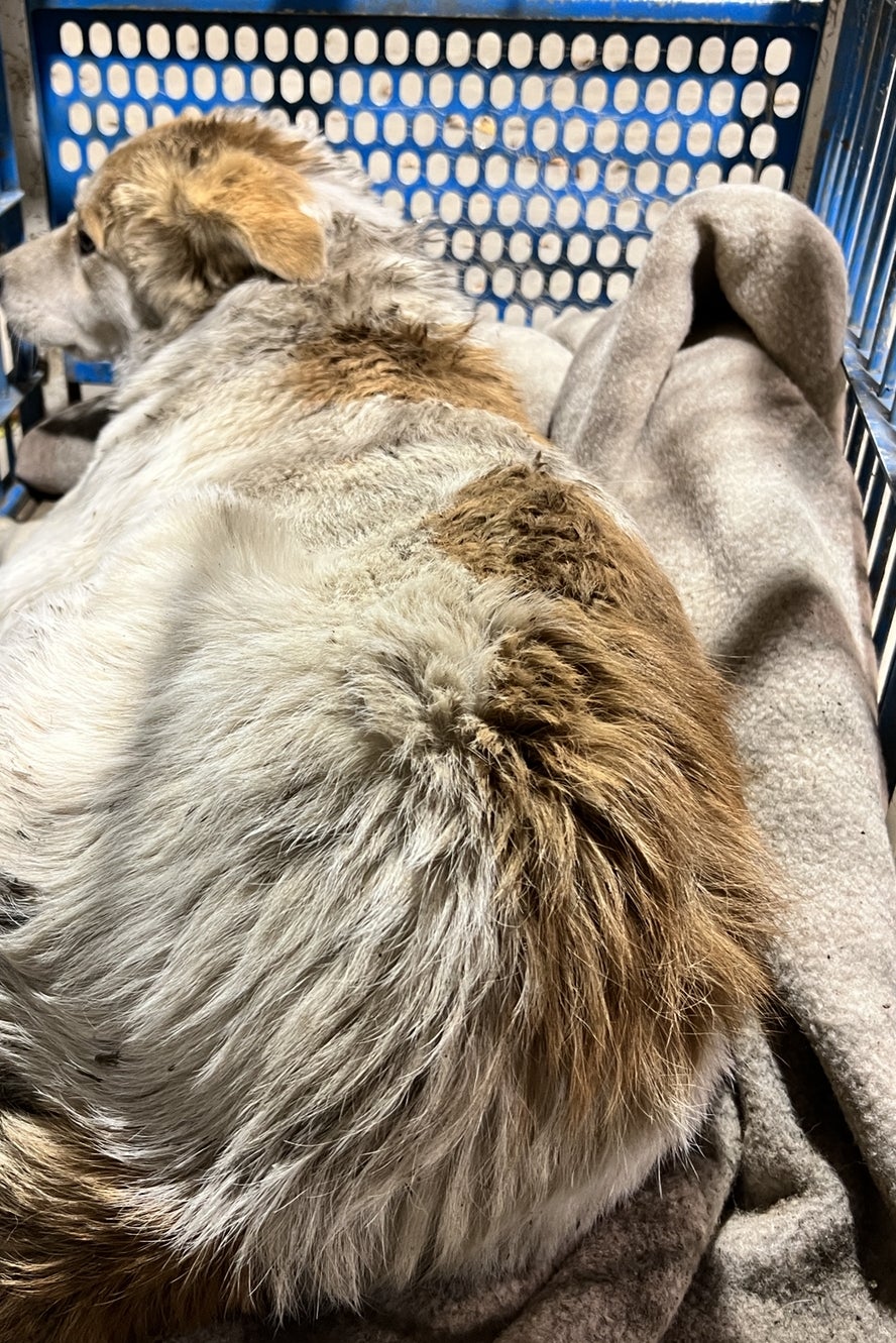 市役所の捕獲箱で捕まっているわんちゃんたち。