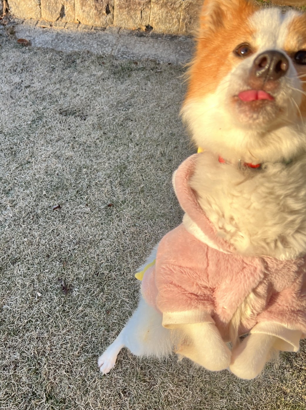 凍った芝生が肉球に冷たいと思うのですが
