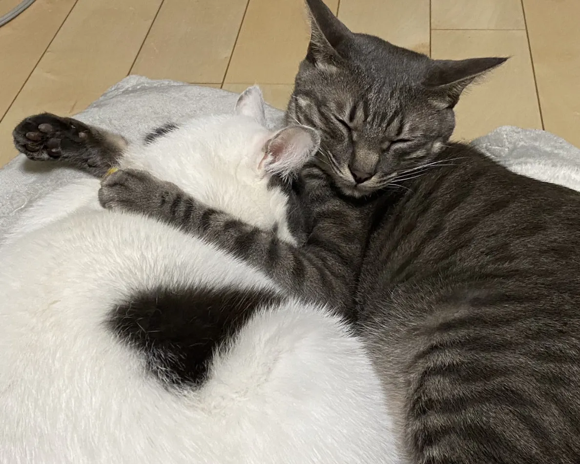 今は先住猫さんのいるおうちで幸せに過ごしている福くん。