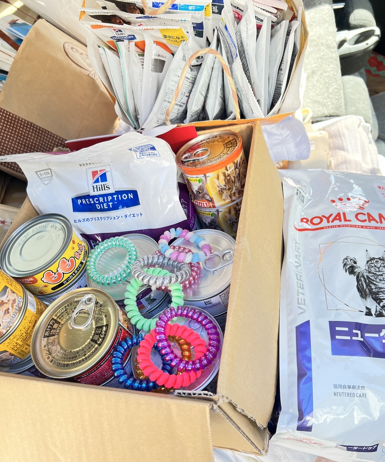 I様からわんにゃんフード、暖房器具、タオル、電気毛布等ご支援いただきました。