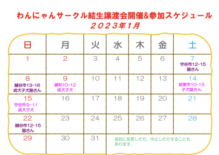 ☆2023年1月の譲渡会開催&参加予定です。☆