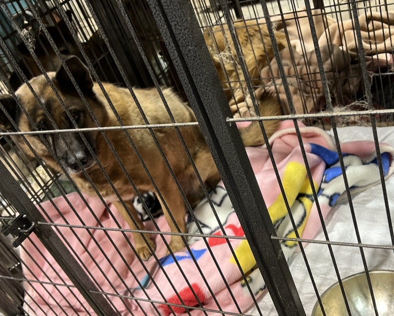 その後、ボランティアとして大型犬用のケージにそれぞれ移し、