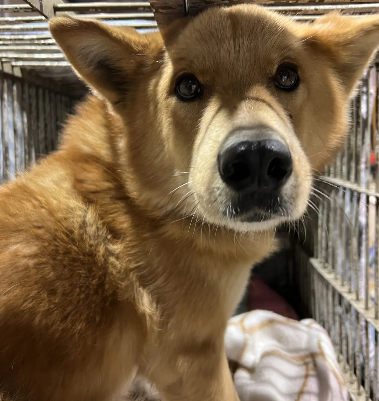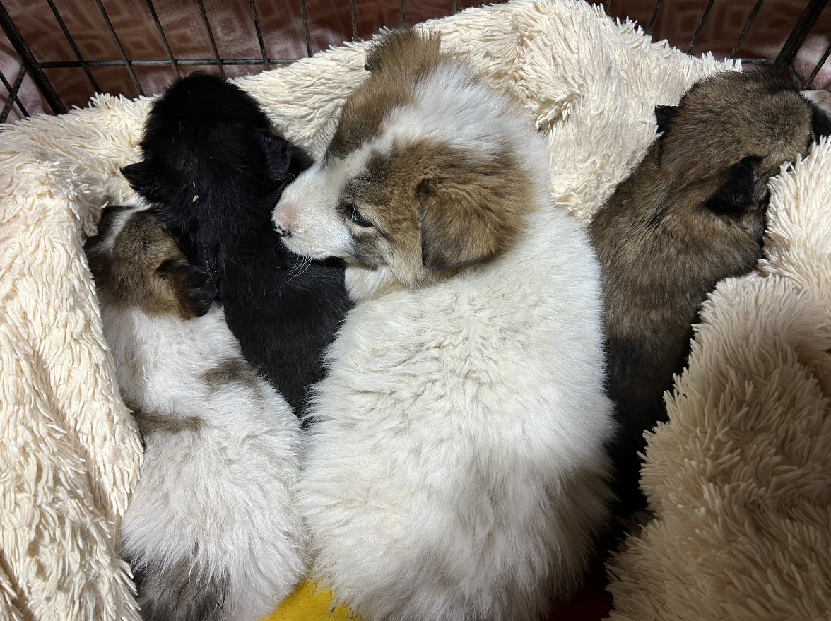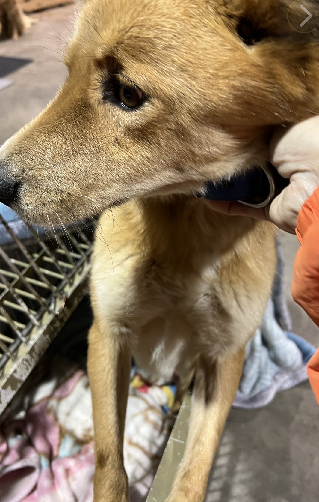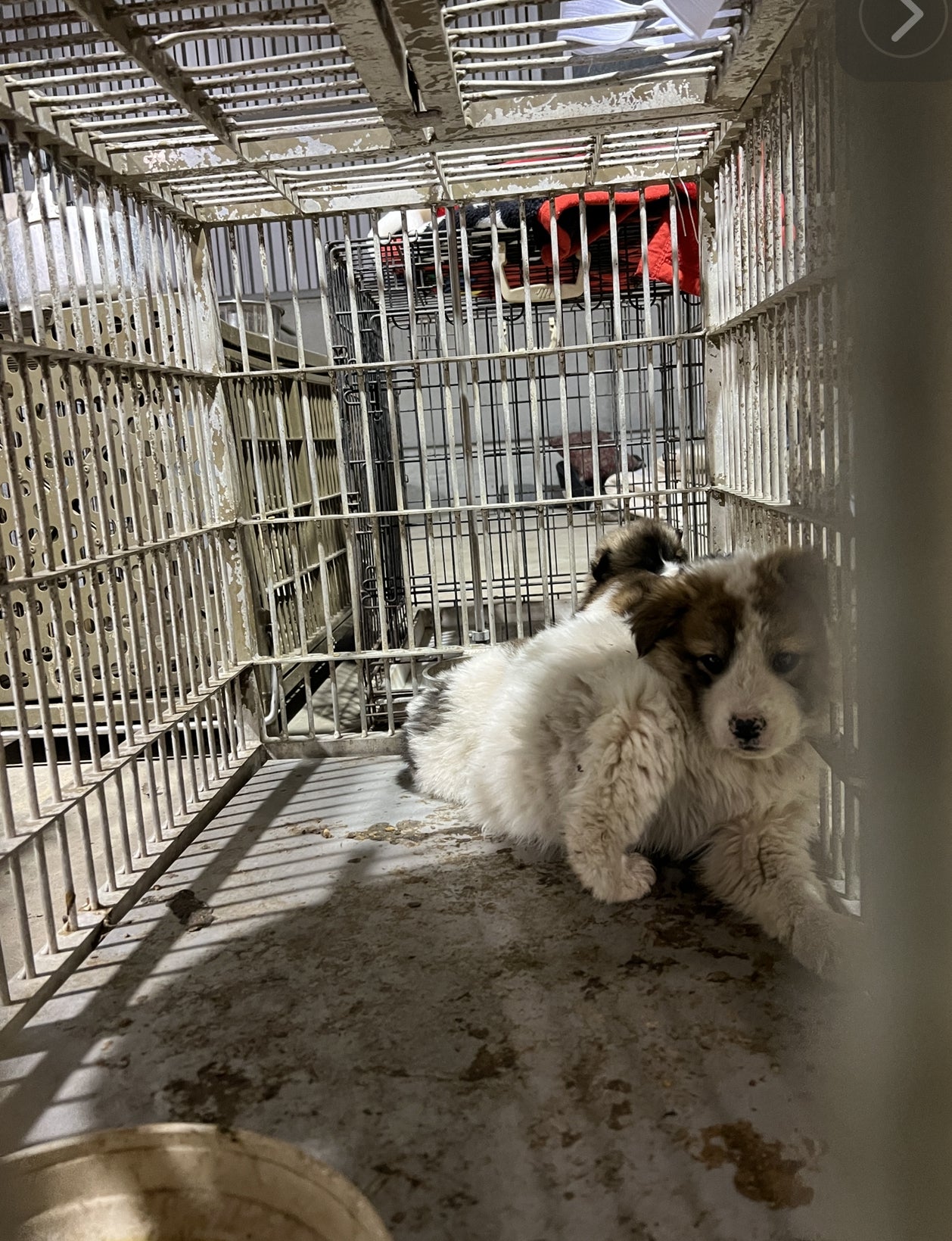 市役所の捕獲箱で捕まっているわんちゃんたち。