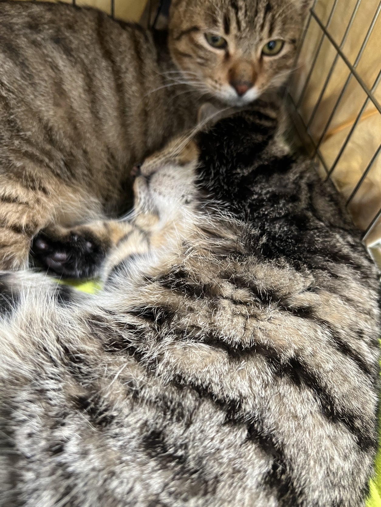 その後、ボランティアとして大型犬用のケージにそれぞれ移し、