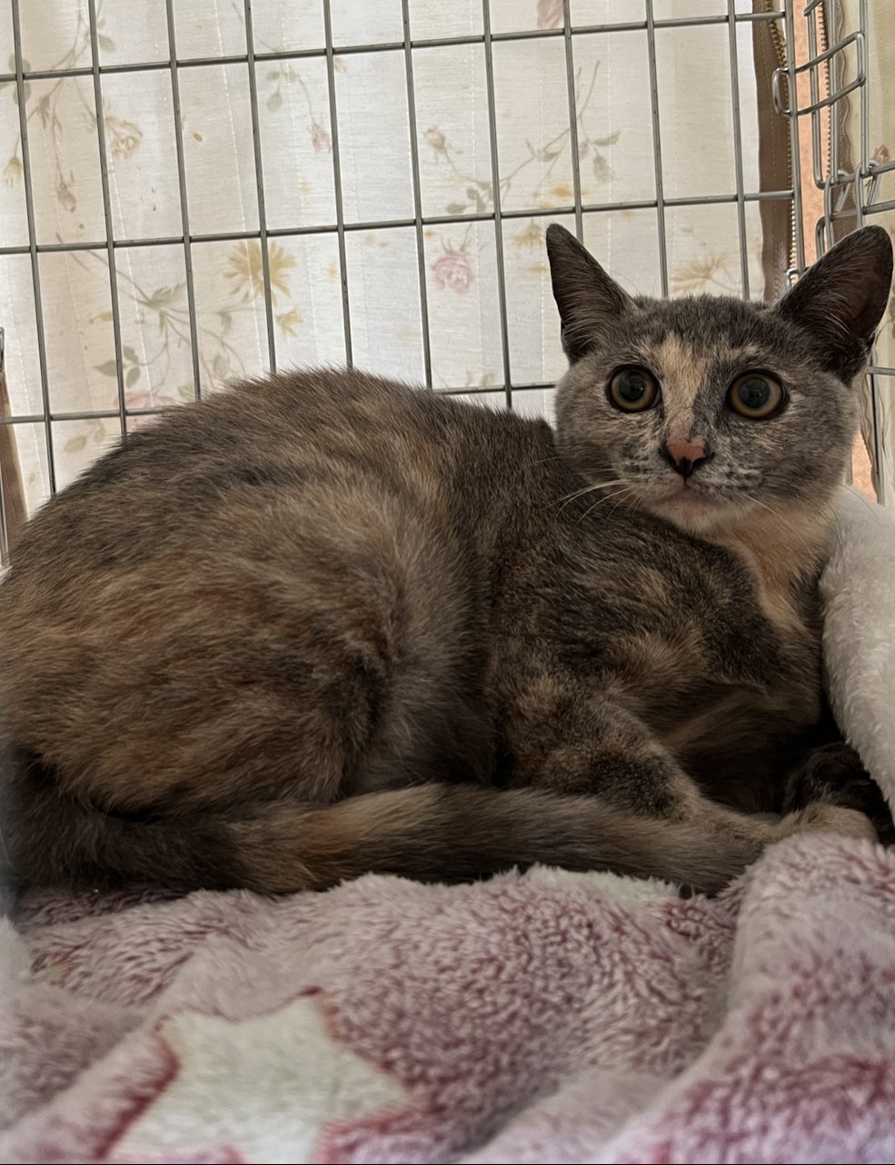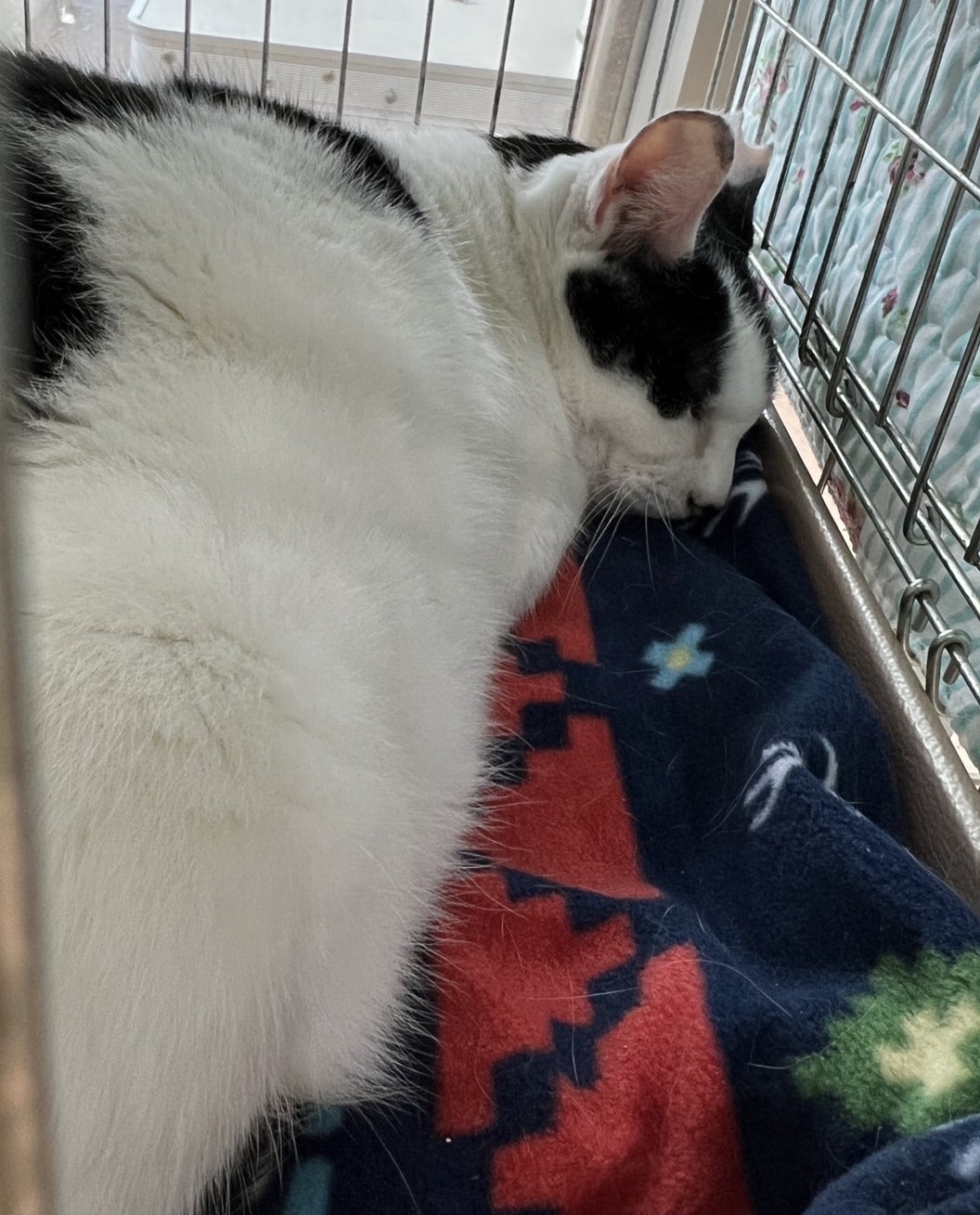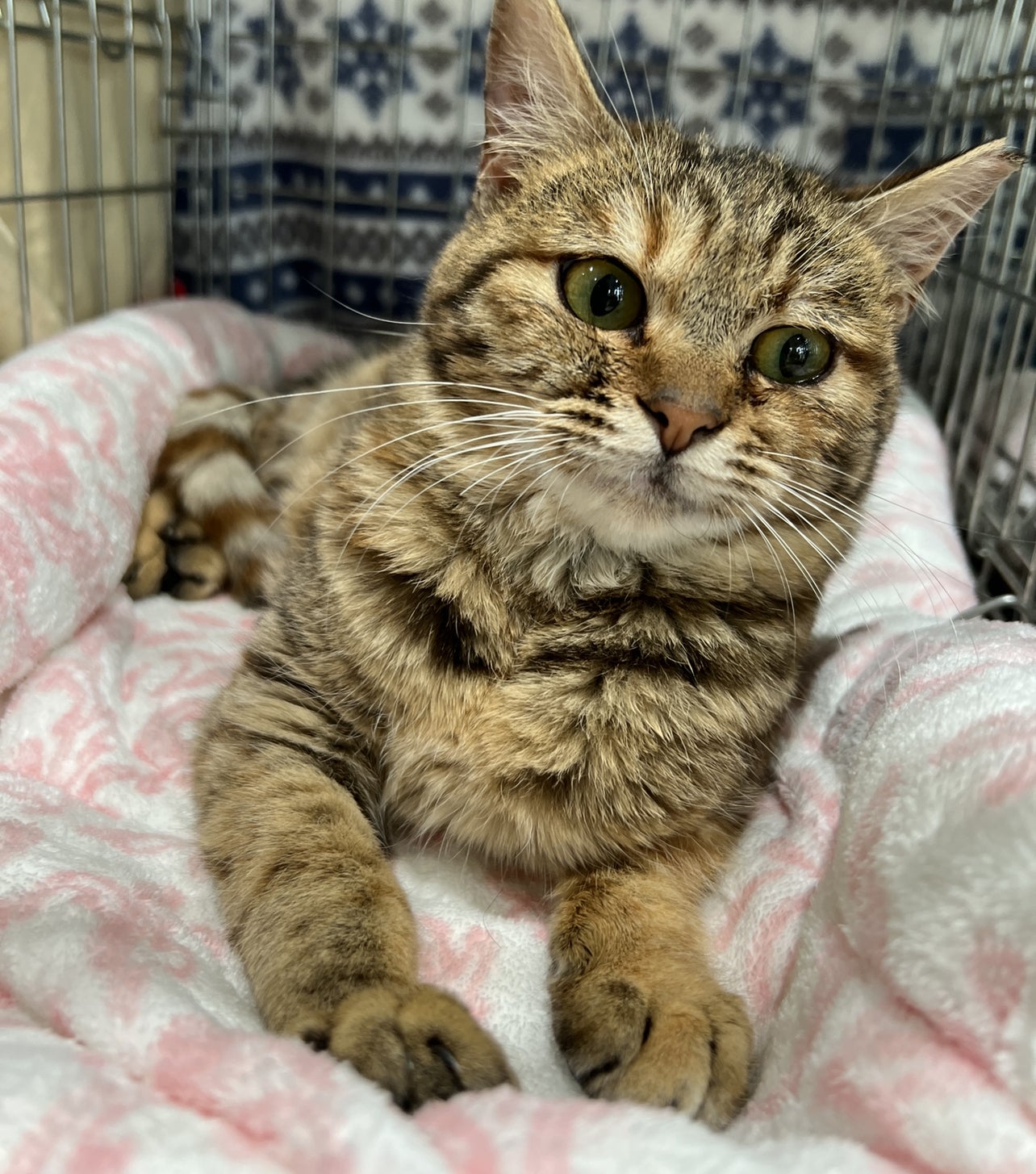 衰弱して頭を自力で上げられなかっためめちゃん。保護したのは昨年3月。