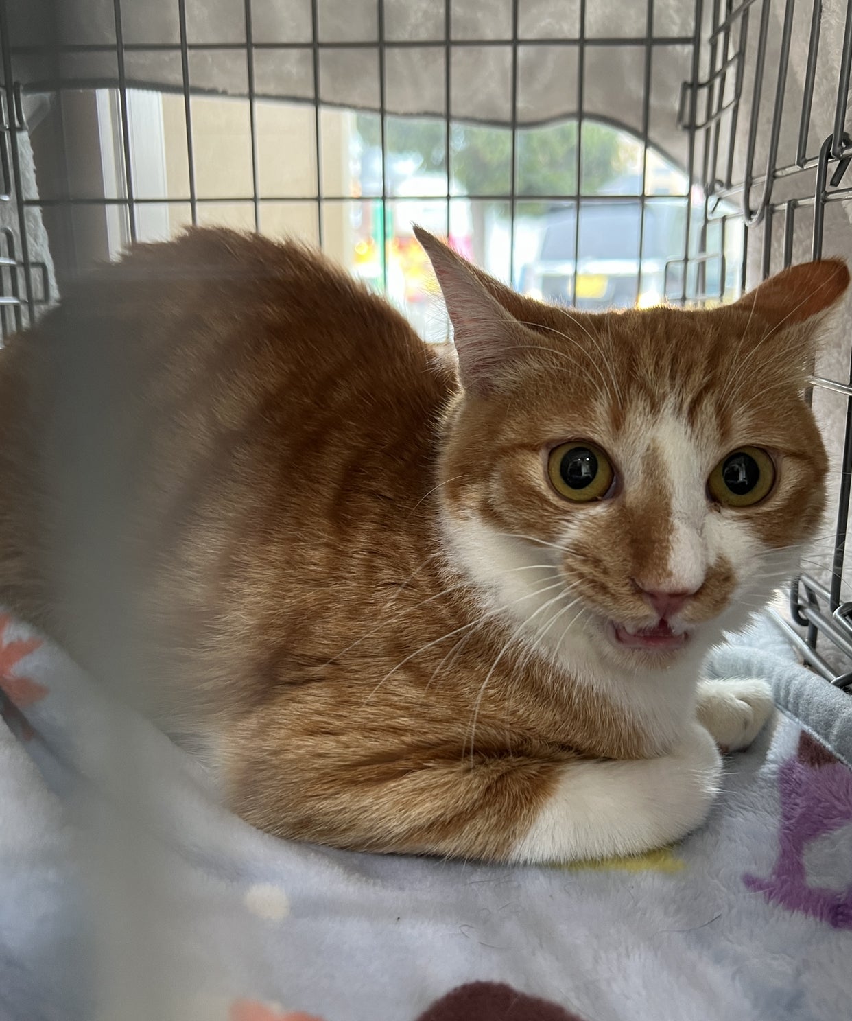 猫さんと同じサイズのケージのなかでドキドキしていました。
