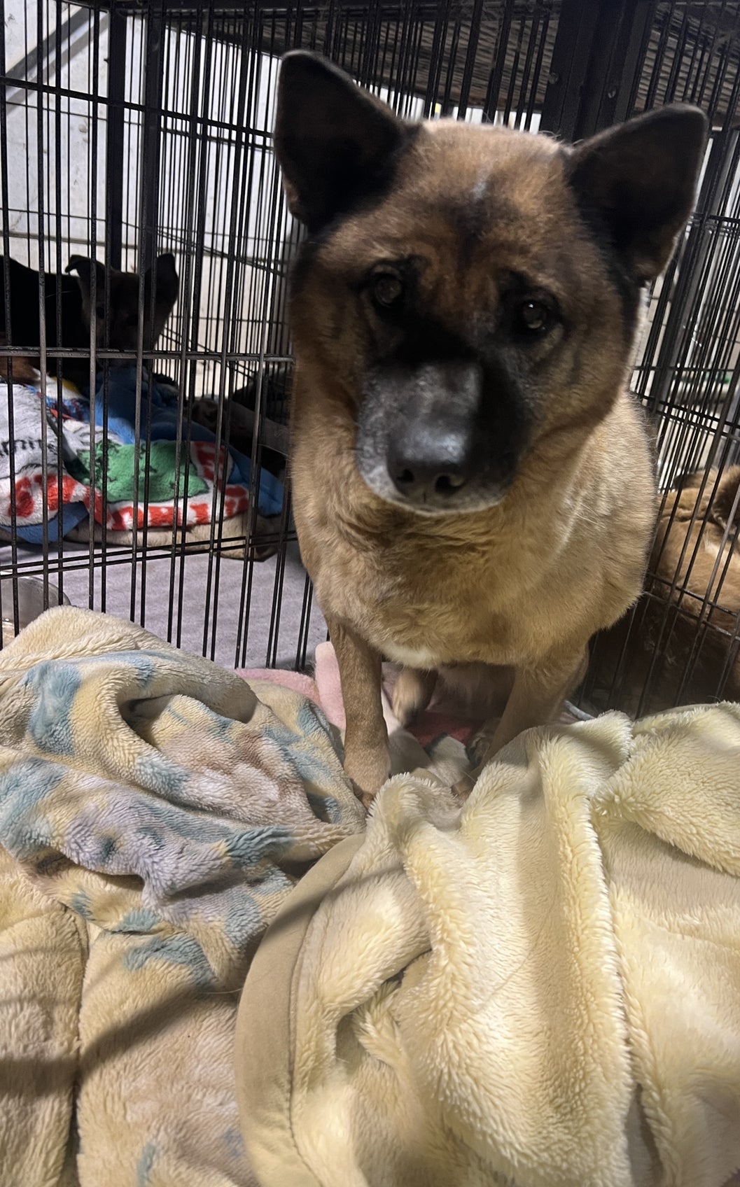 その後、ボランティアとして大型犬用のケージにそれぞれ移し、