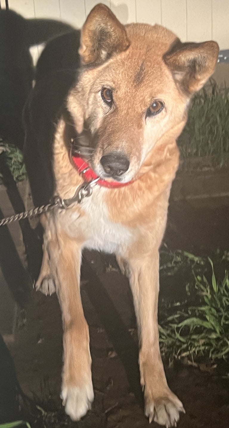 ジロくん、寒いでしょうに私がきたら犬小屋から出てきてくれました。