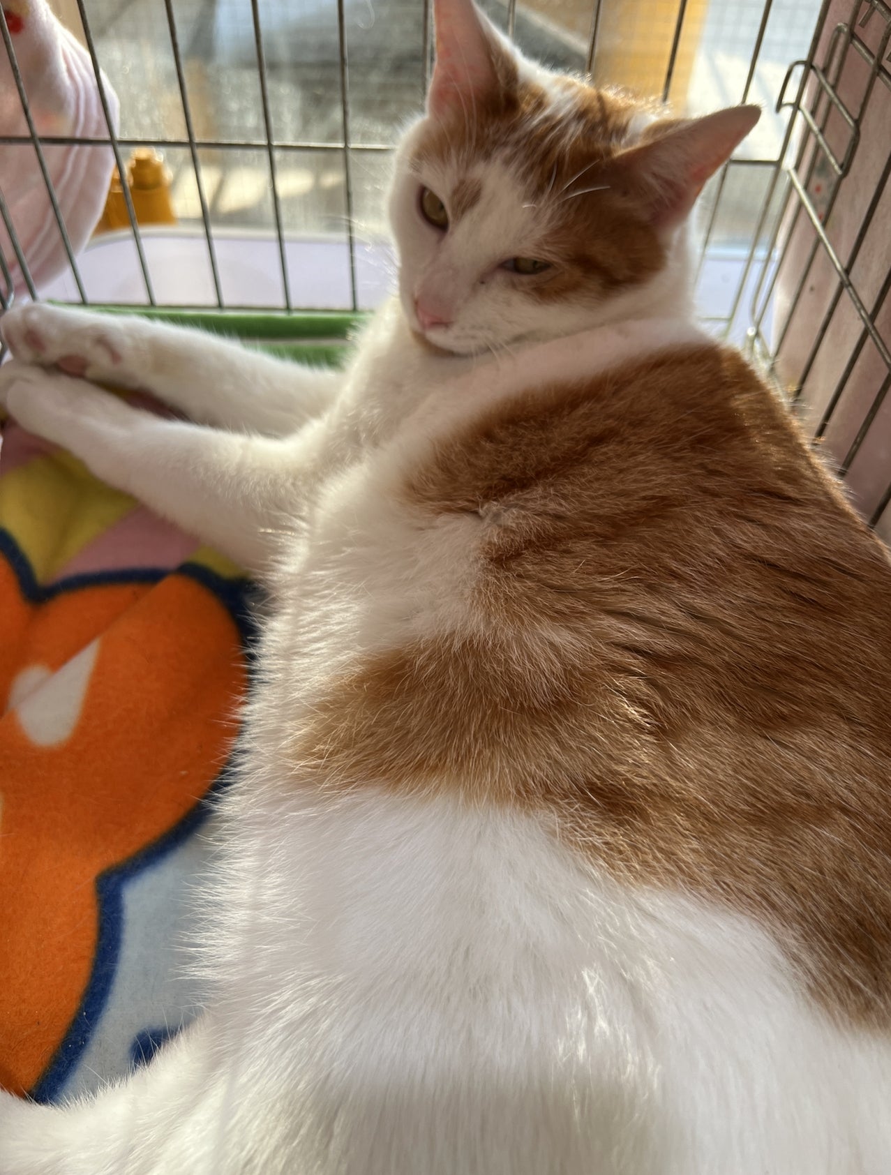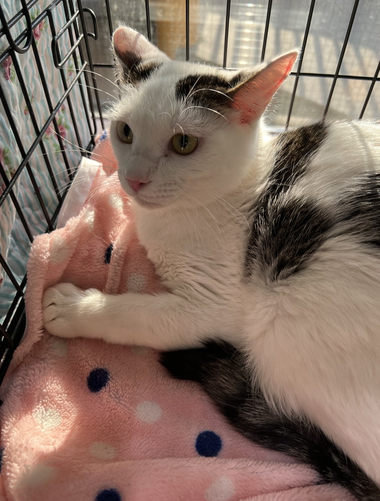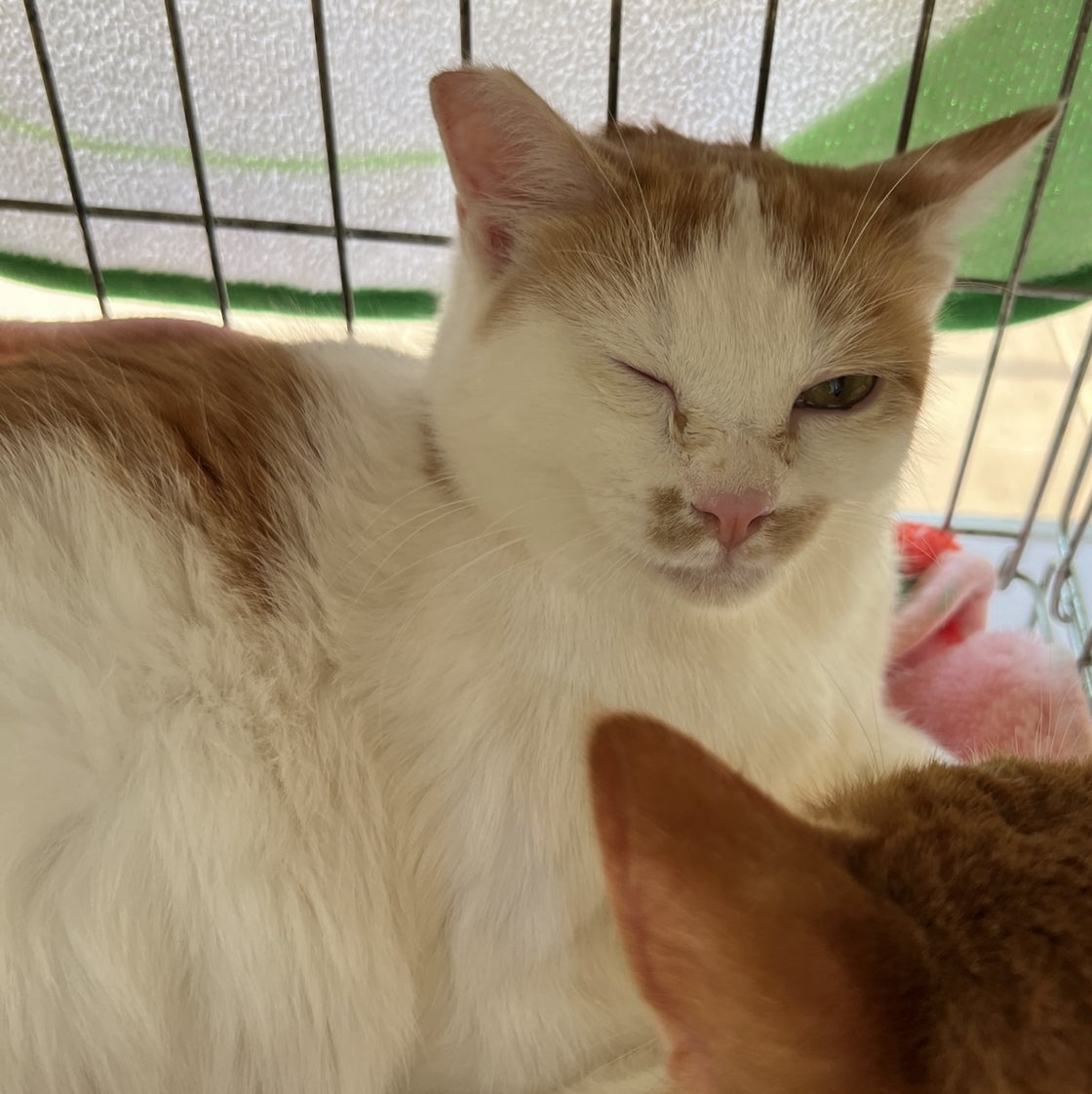 衰弱して頭を自力で上げられなかっためめちゃん。保護したのは昨年3月。