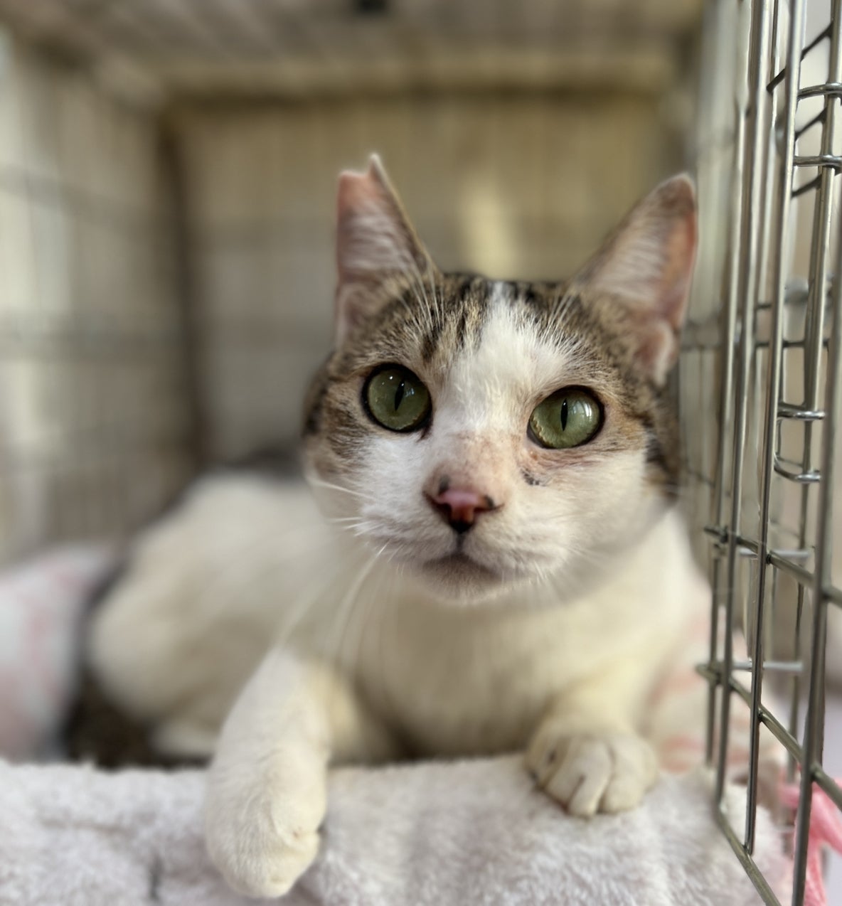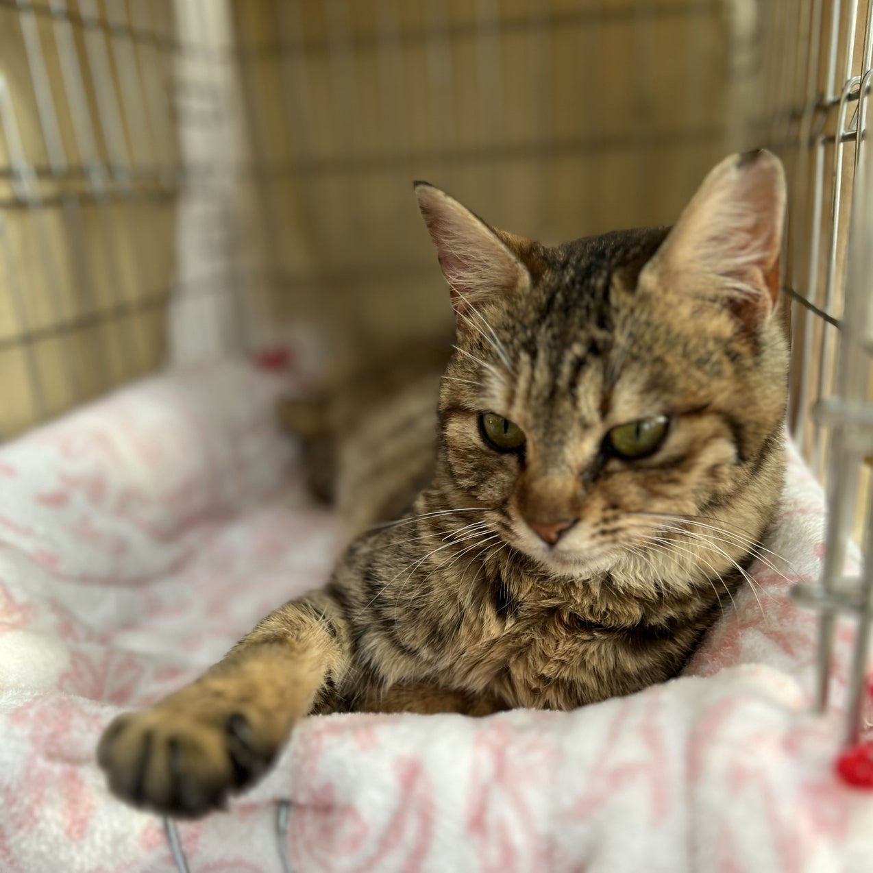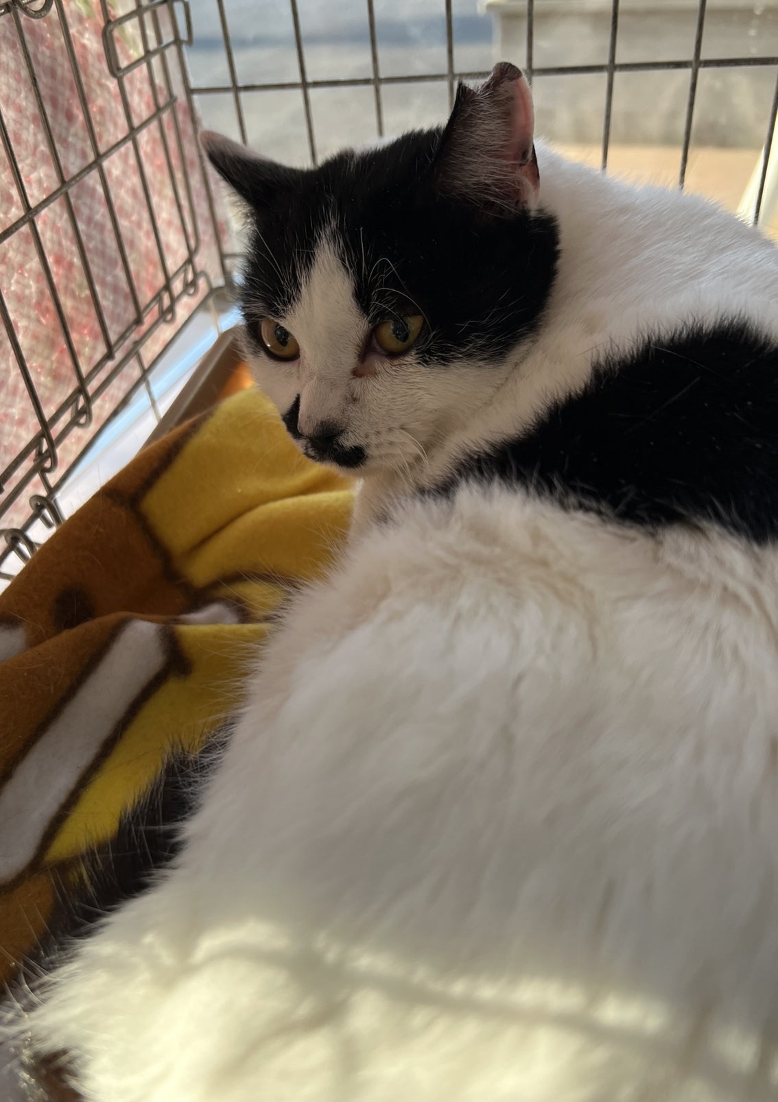 衰弱して頭を自力で上げられなかっためめちゃん。保護したのは昨年3月。