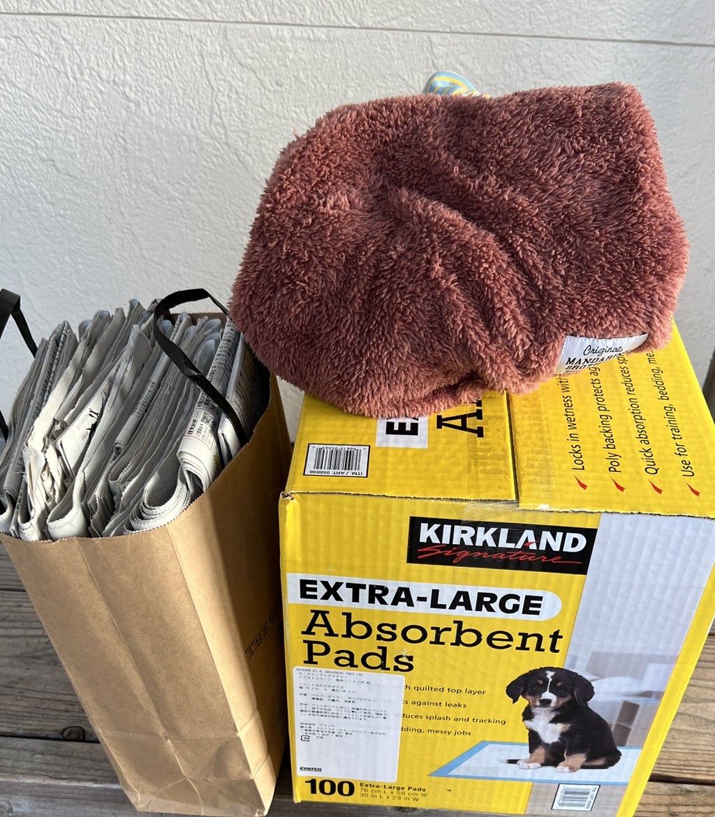 N Mパパママからペットシート、わんちゃん服、新聞紙ご支援いただきました。