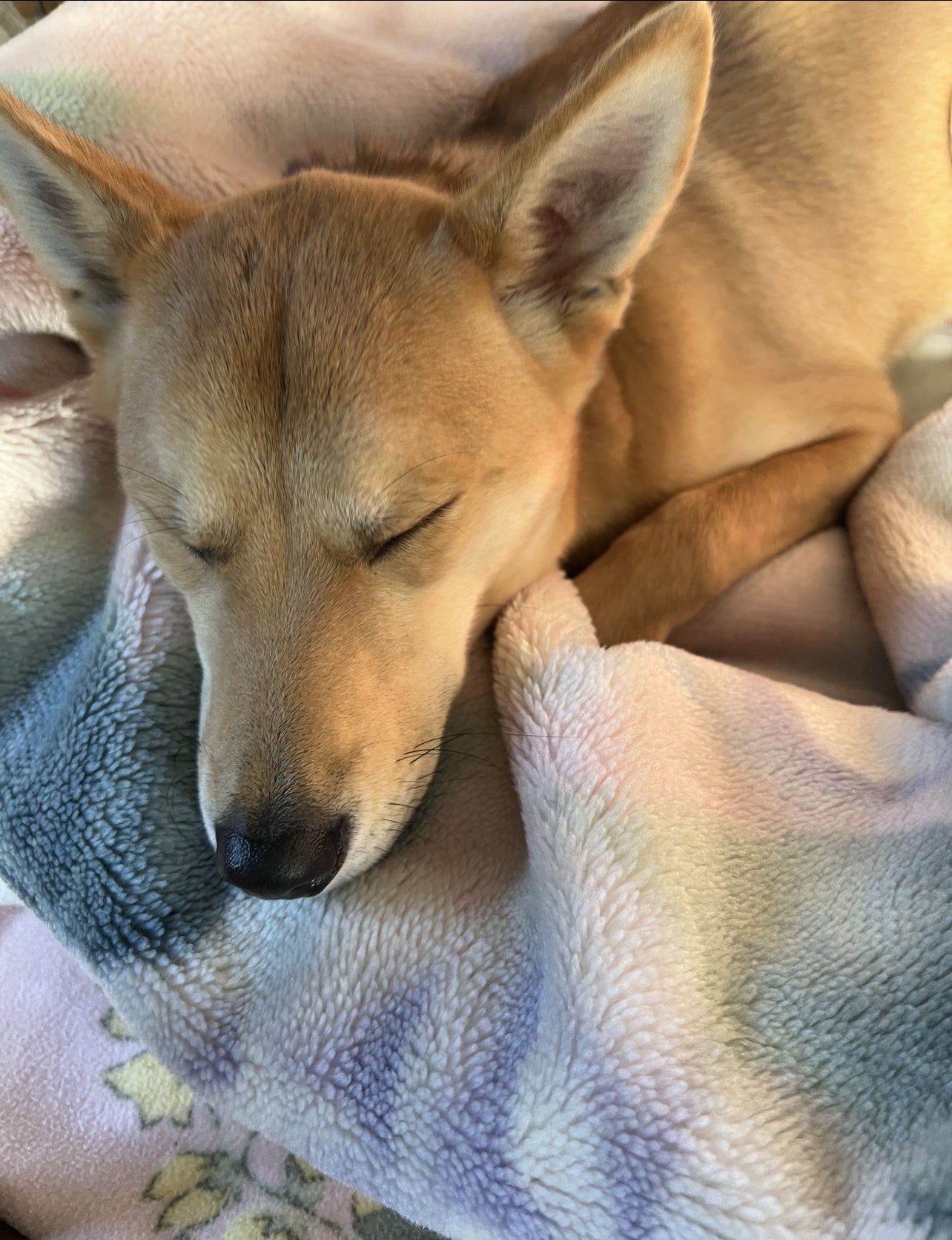 衰弱して頭を自力で上げられなかっためめちゃん。保護したのは昨年3月。