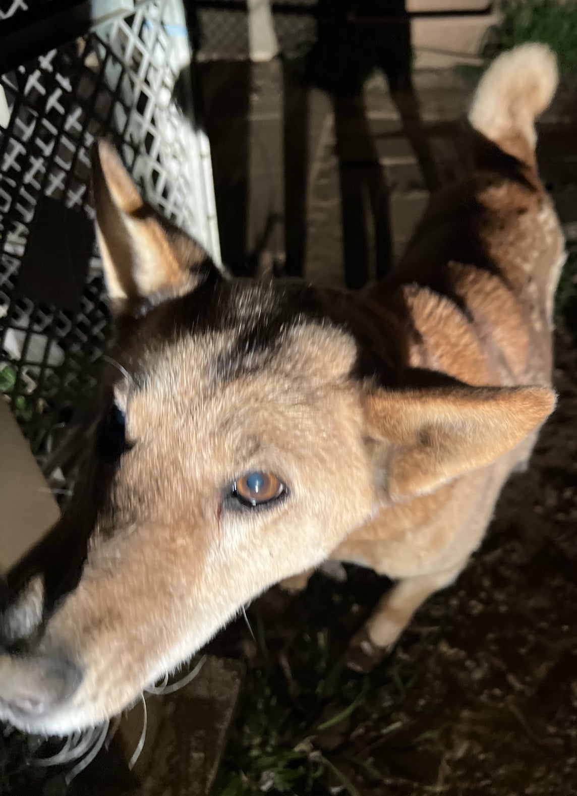 市役所の捕獲箱で捕まっているわんちゃんたち。
