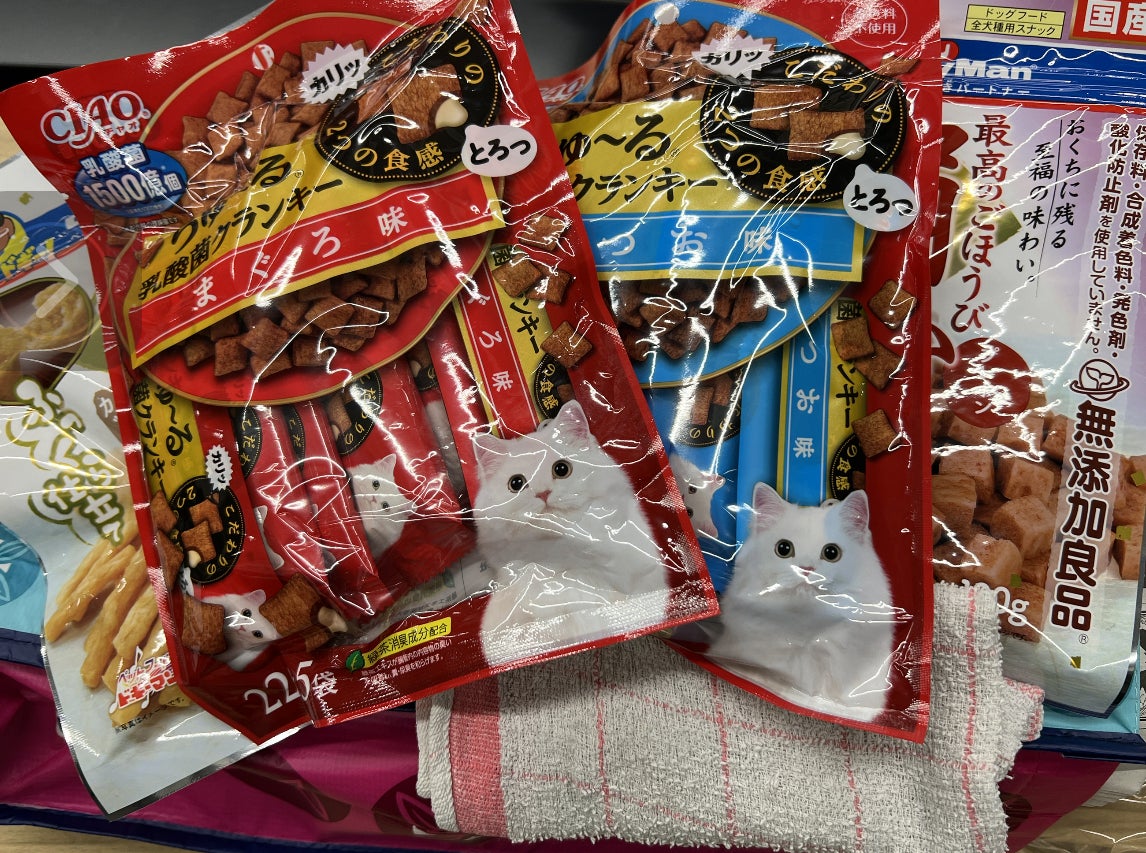 M様から猫さんわんちゃんおやつ、新聞紙等ご支援いただきました。