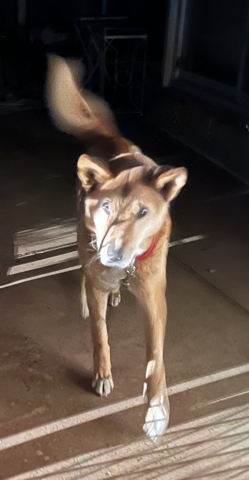 衰弱して頭を自力で上げられなかっためめちゃん。保護したのは昨年3月。