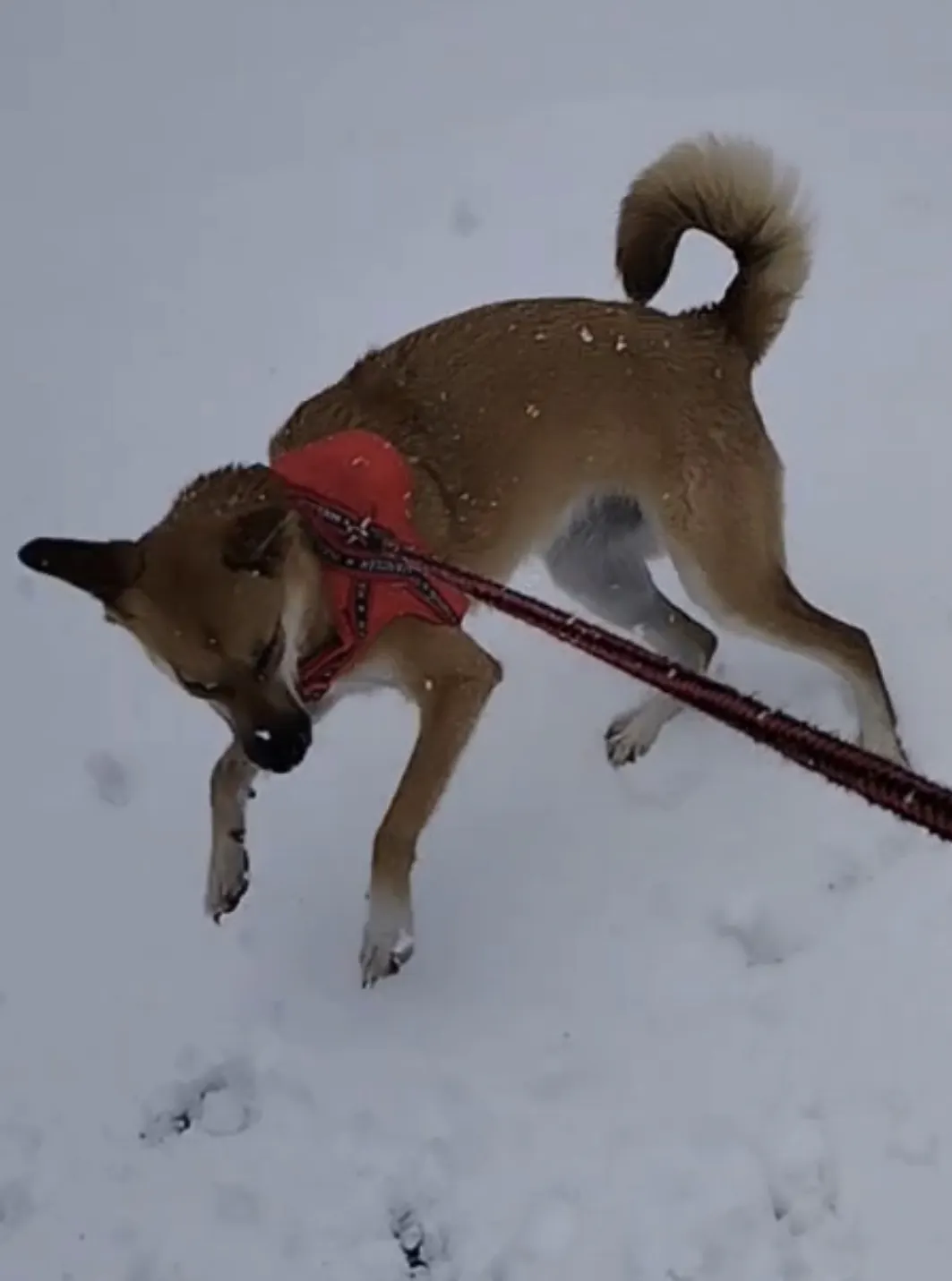 久々の雪にはしゃぐわんちゃんの様子を