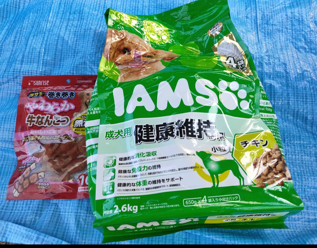 Tパパママからわんちゃんフードにおやつご支援いただきました。