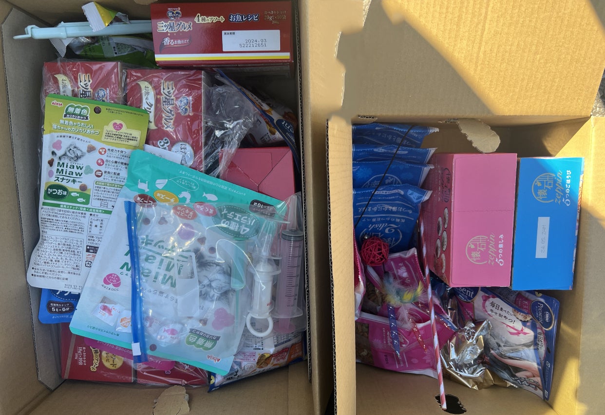 H様から猫さんフードなどたくさんご支援いただきました。