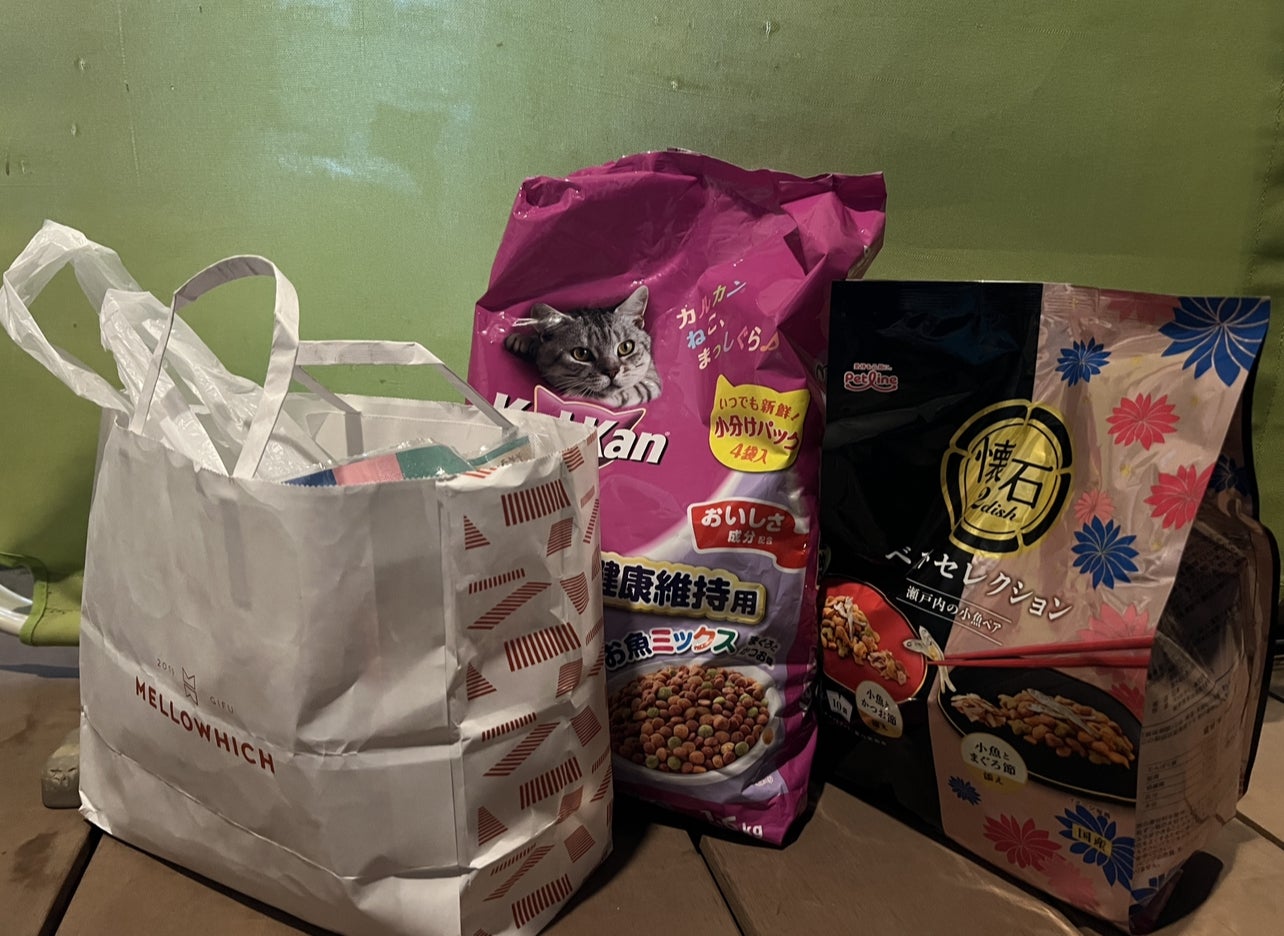 Y様からケージ、ごはん(右上の黒い袋)ご支援いただきました。