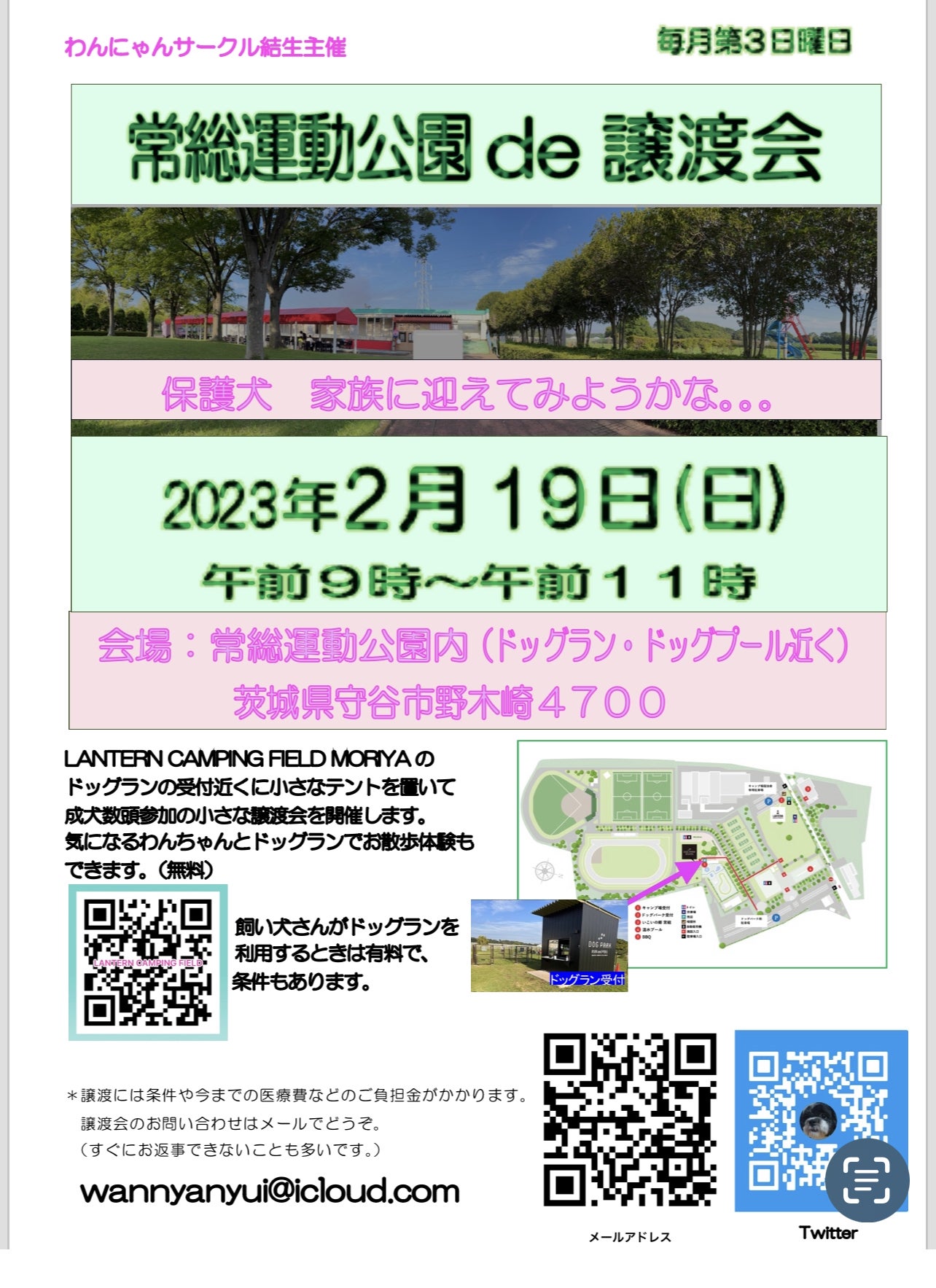 本日も常総運動公園で譲渡会を開催します。