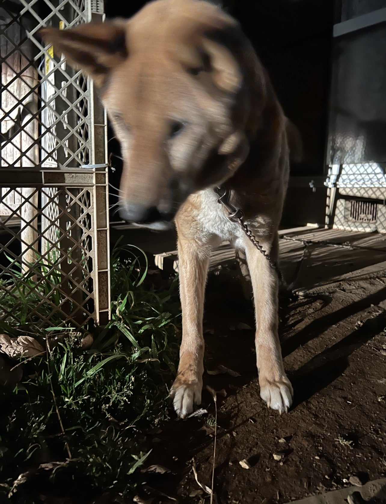 市役所の捕獲箱で捕まっているわんちゃんたち。