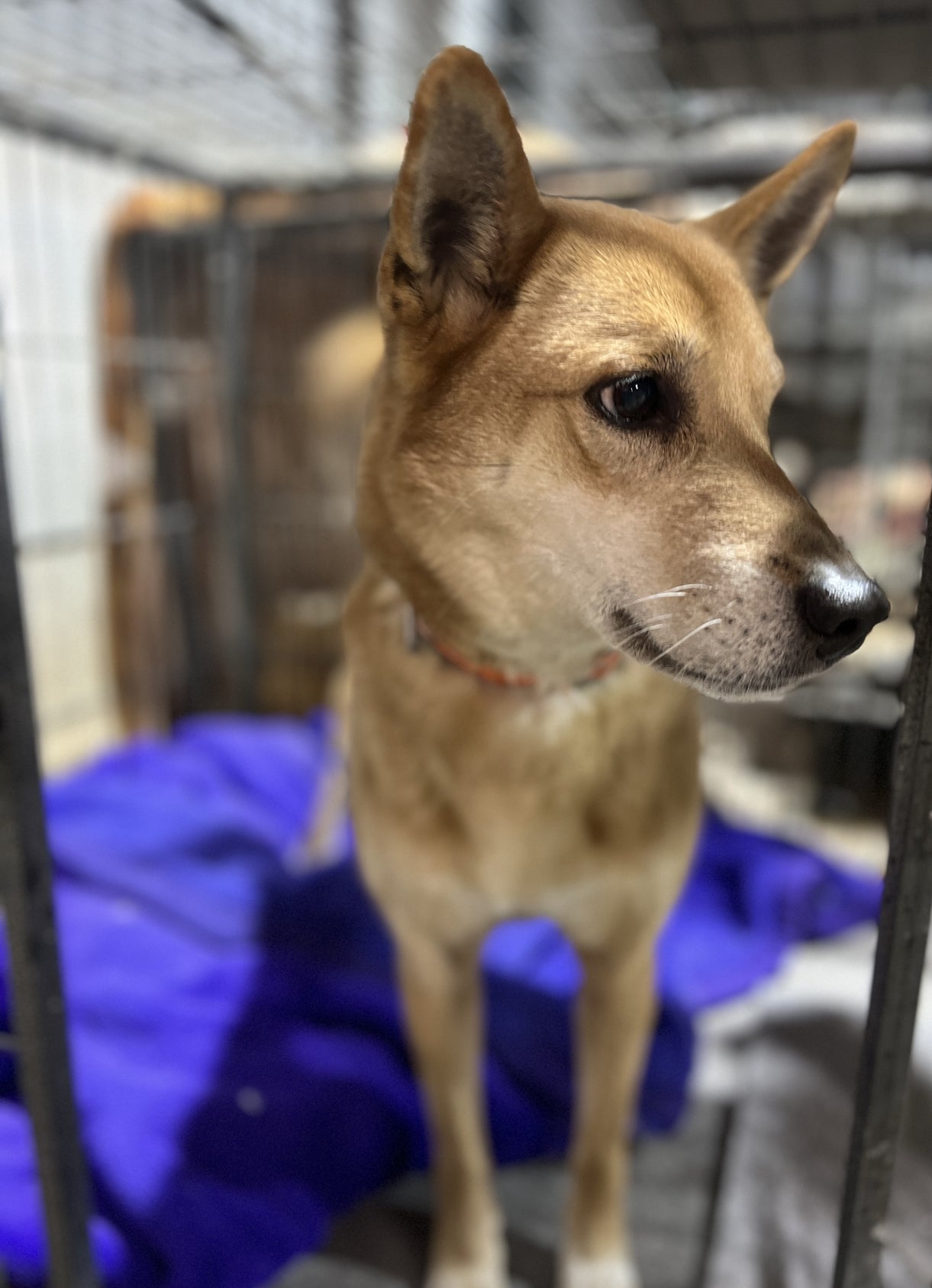 市役所の捕獲箱で捕まっているわんちゃんたち。