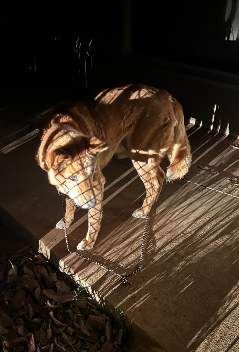 市役所の捕獲箱で捕まっているわんちゃんたち。