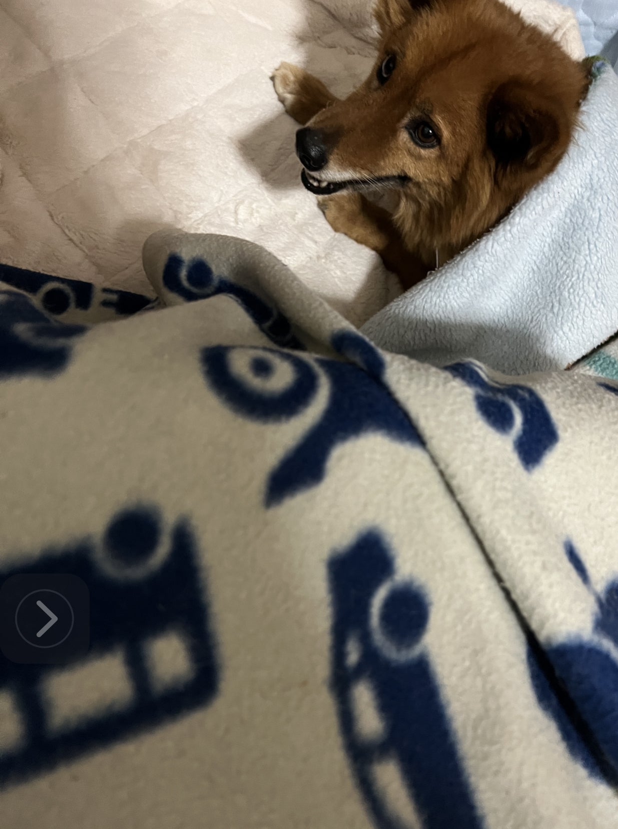 先輩わんちゃんの らみこちゃんに一緒に眠ってもらいました。
