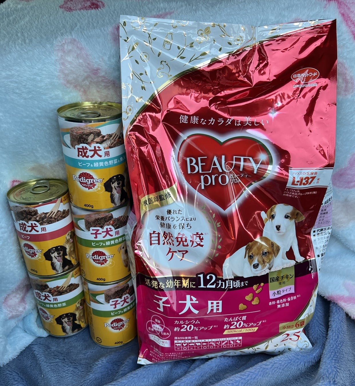 子犬用は缶もドライフードも大量に必要です。