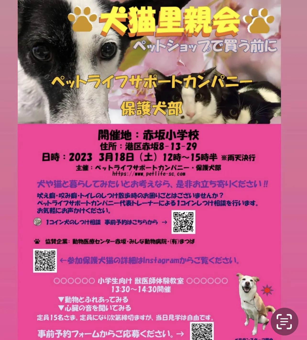 3月18日(土)に赤坂小学校での譲渡会。