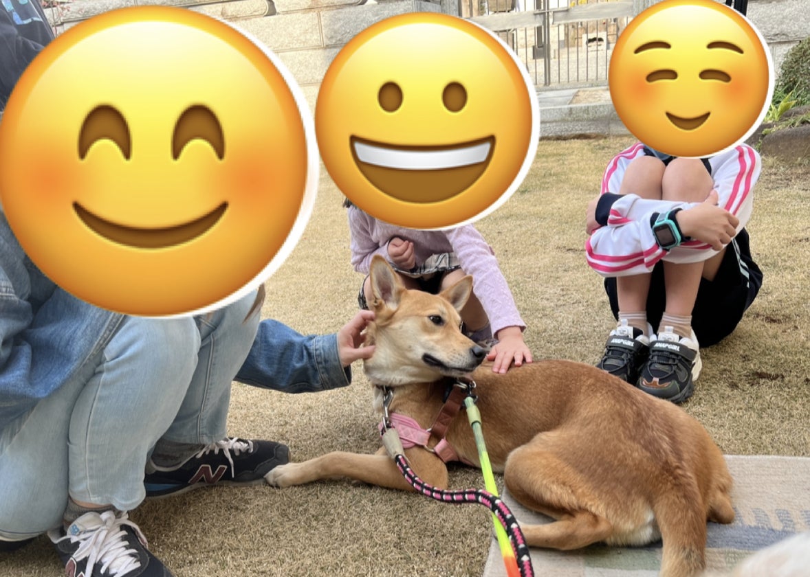 むめよちゃんも来場者の皆さんに撫でてもらってご満足。