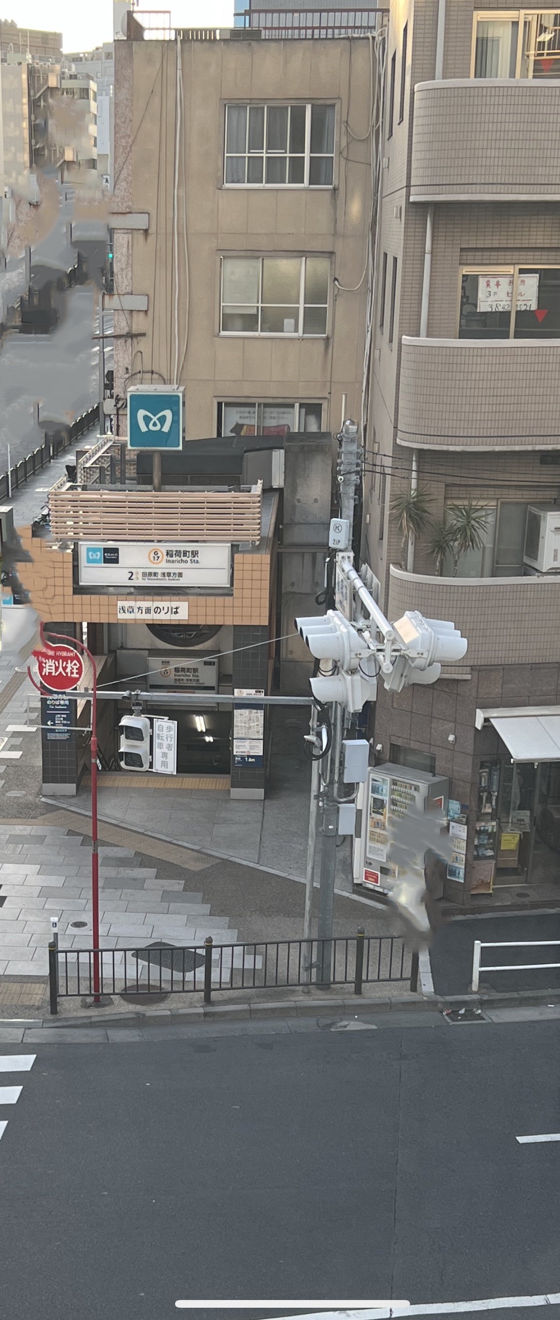 3階にのぼる窓からは地下鉄駅がすぐそばに見えました。