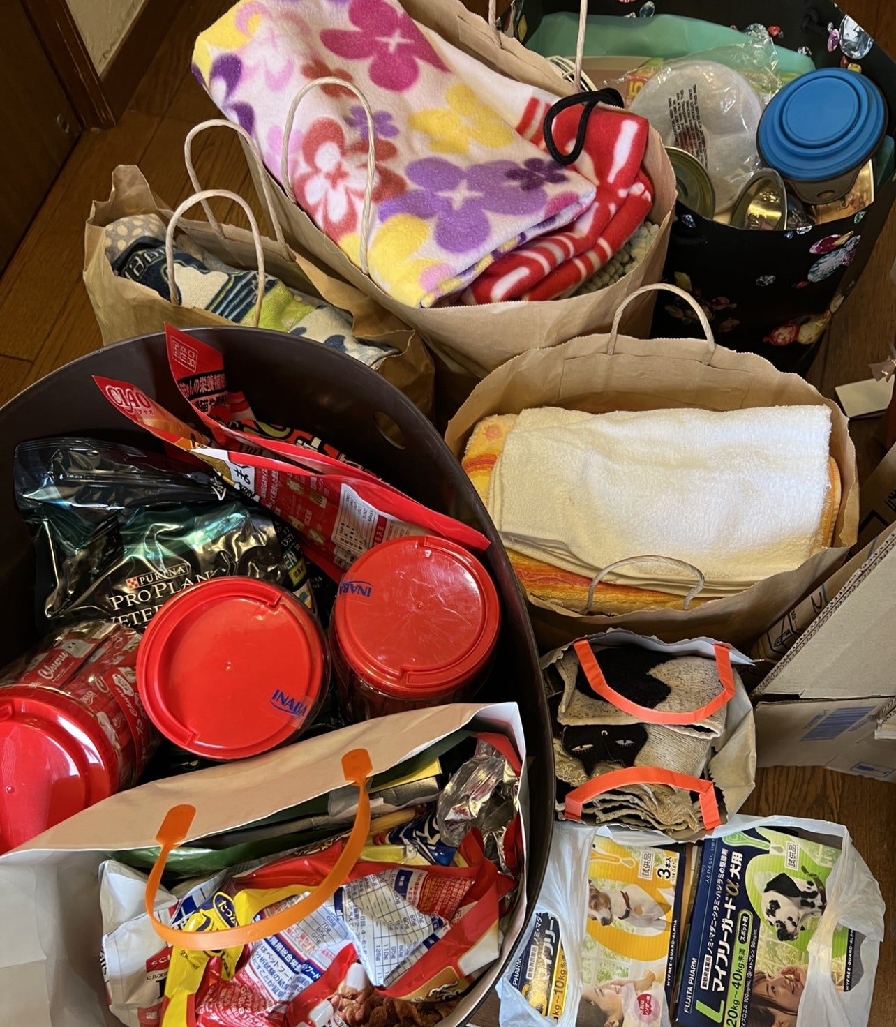 Y様からタオルやフードなどご支援いただきました。