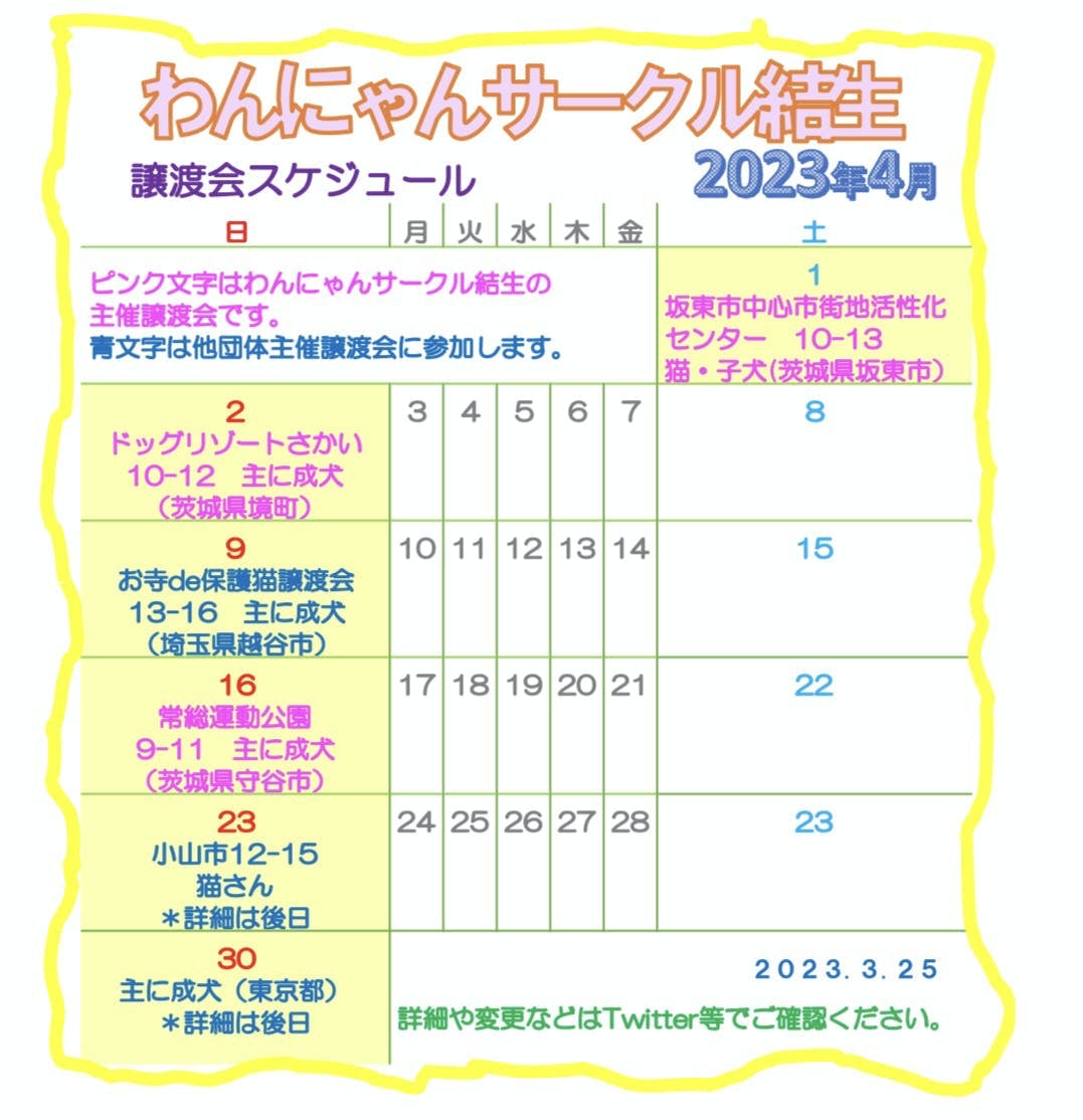 4月の譲渡会の予定です。