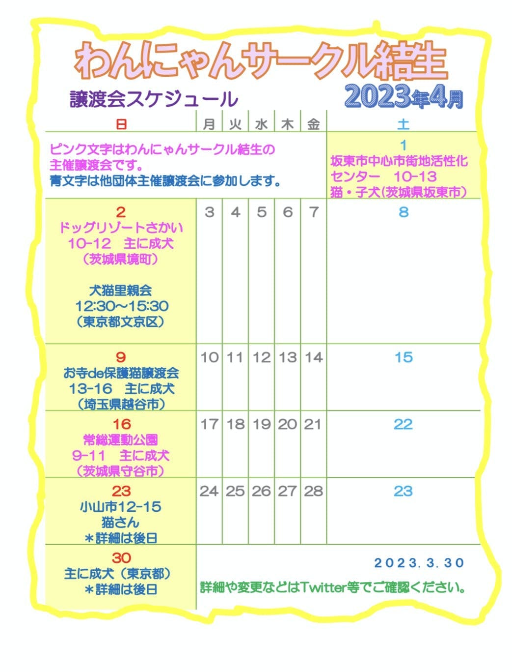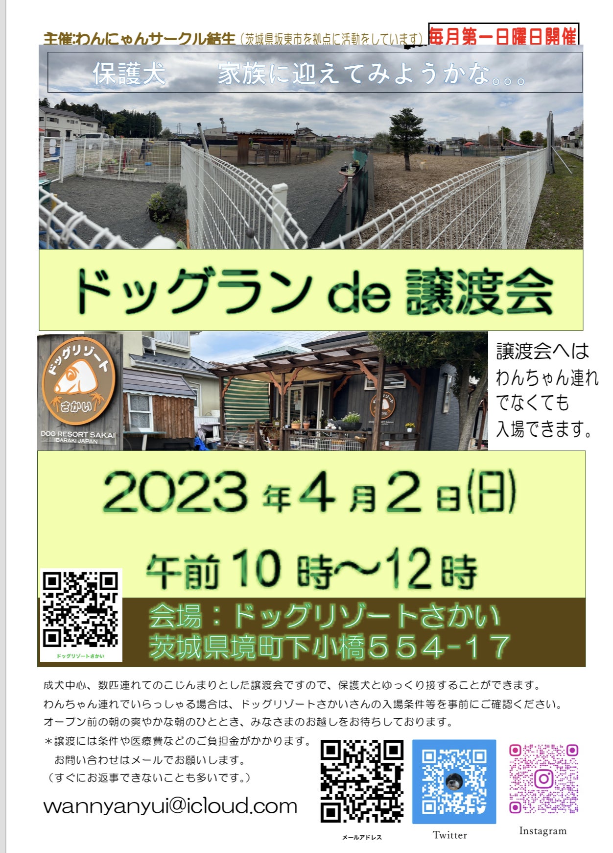 また、つくば市でも他の団体さんがわんちゃんの譲渡会をします。